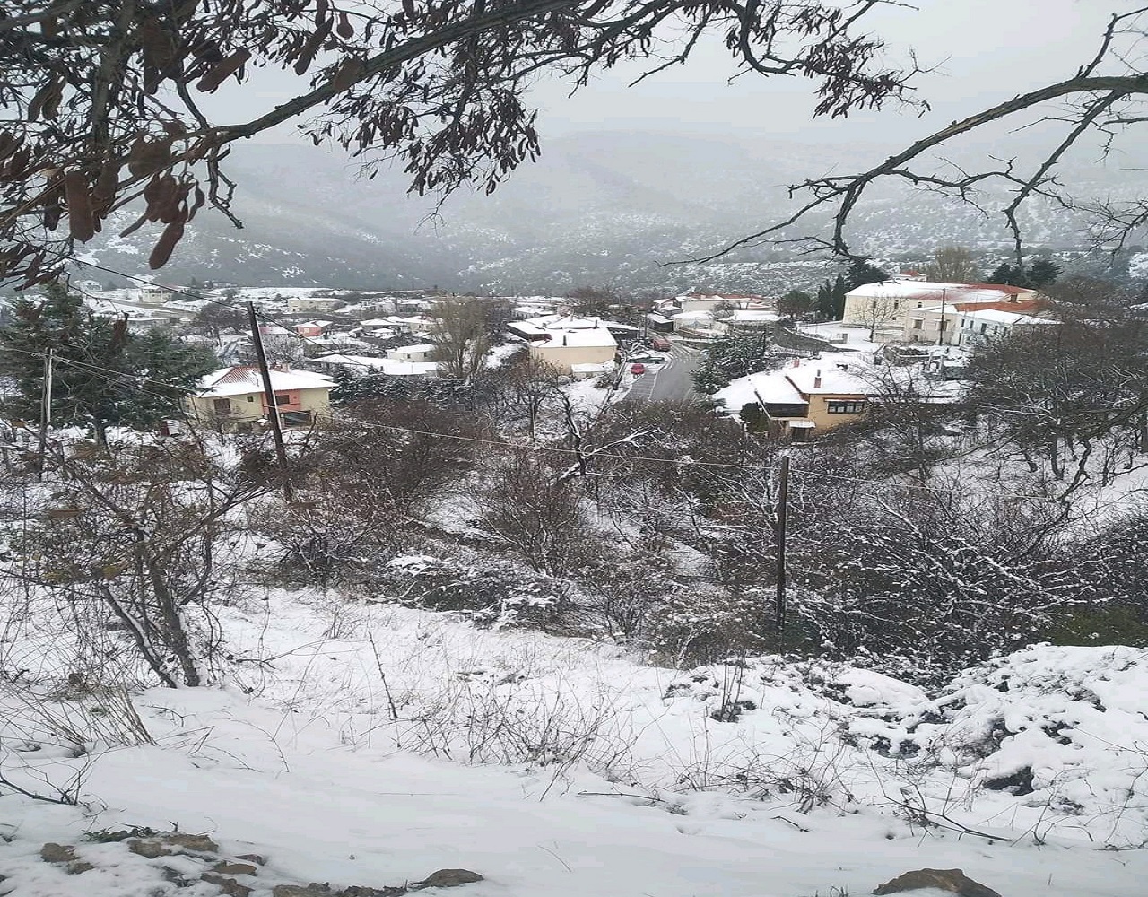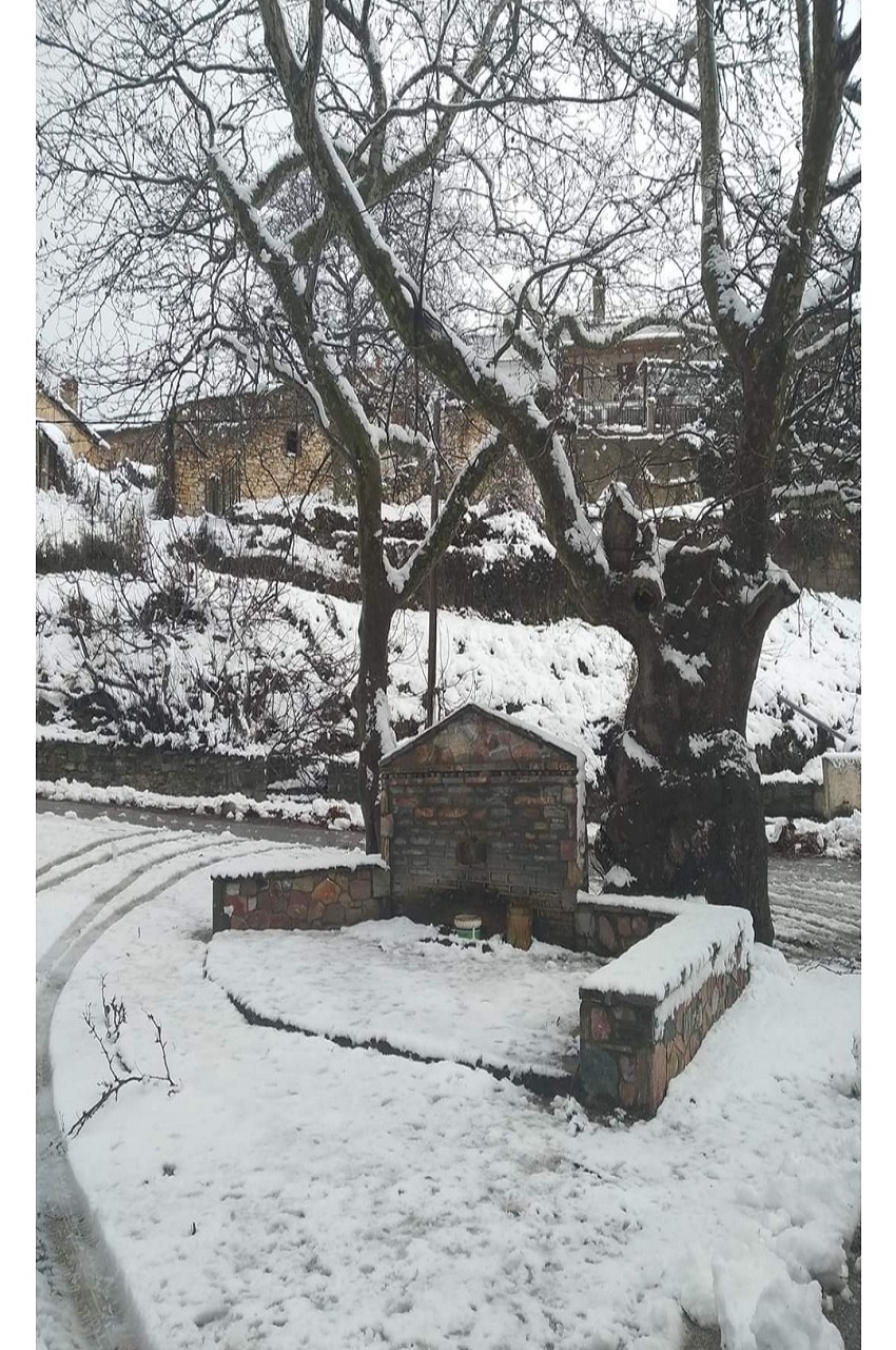 Το χιόνι έφτασε ήδη στους 5 πόντους μέσα στο χωριό, λίγο περισσότερο πιο ψηλά στο Καταφύγιο.