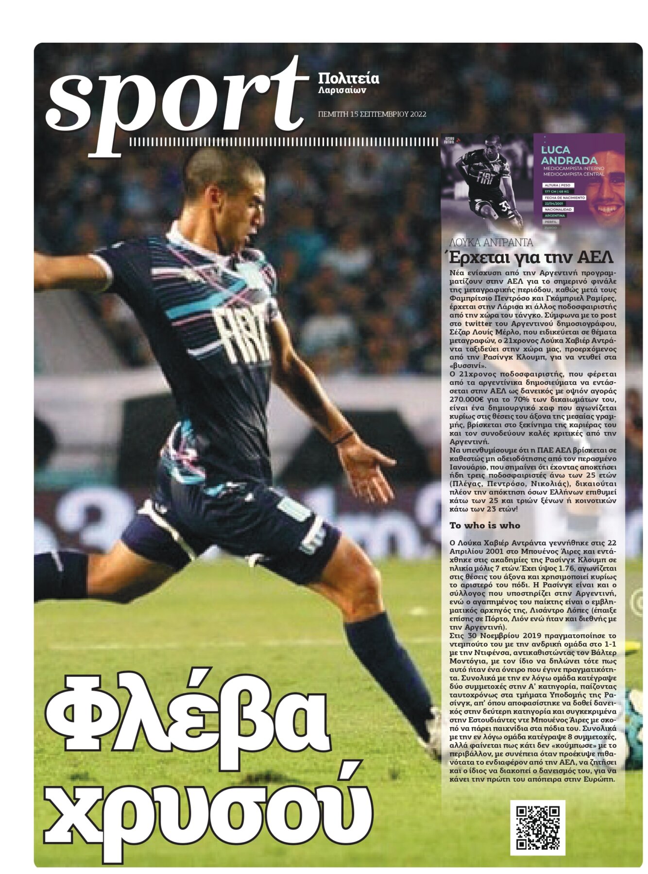- Το παραπάνω ρεπορτάζ δημοσιεύεται σήμερα στην καθημερινή εφημερίδα “Πολιτεία Λαρισαίων”, που μαζί με την δευτεριάτικη “Πολιτεία των Σπορ”, ασχολούνται επισταμένα με το ρεπορτάζ της ΑΕΛ: