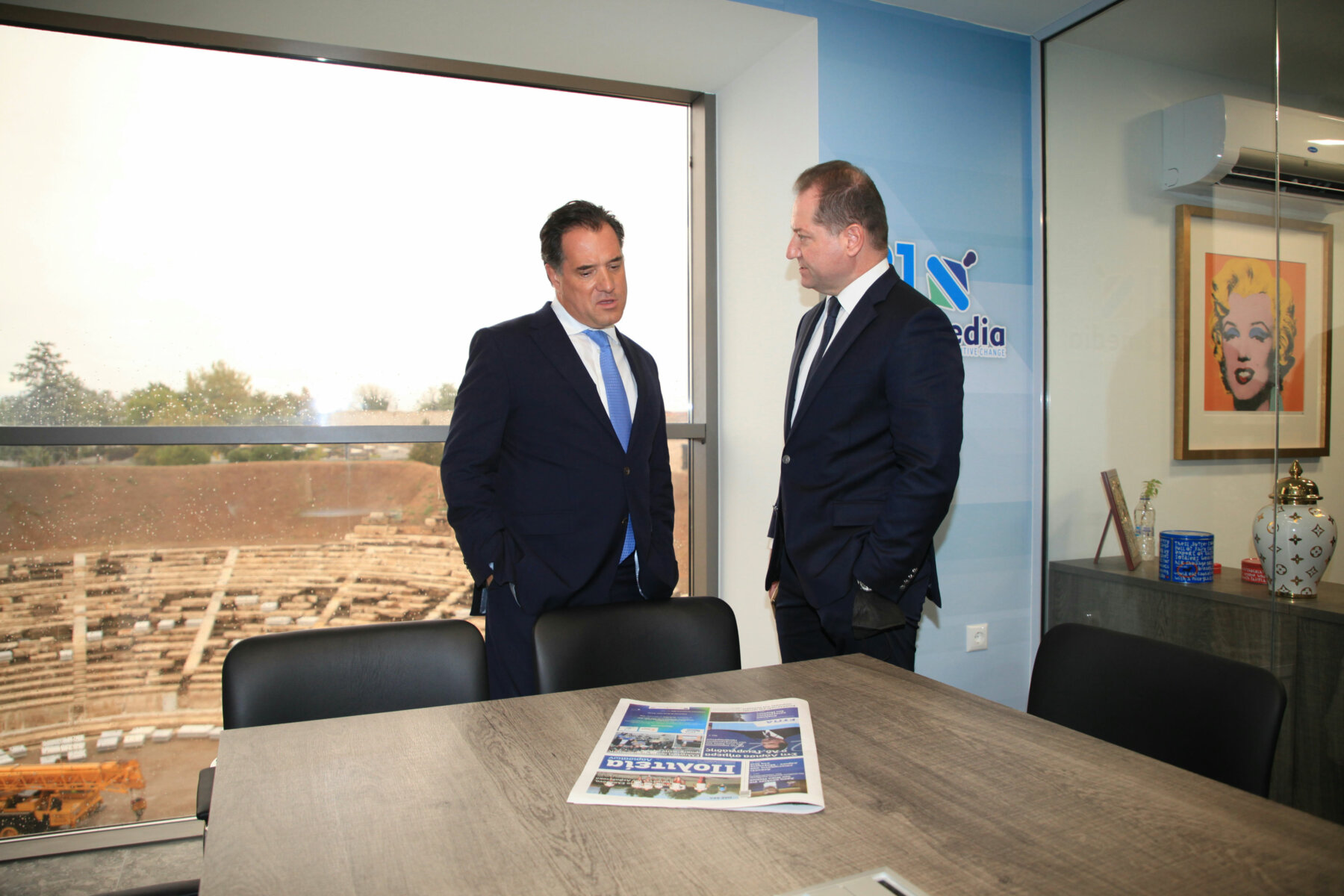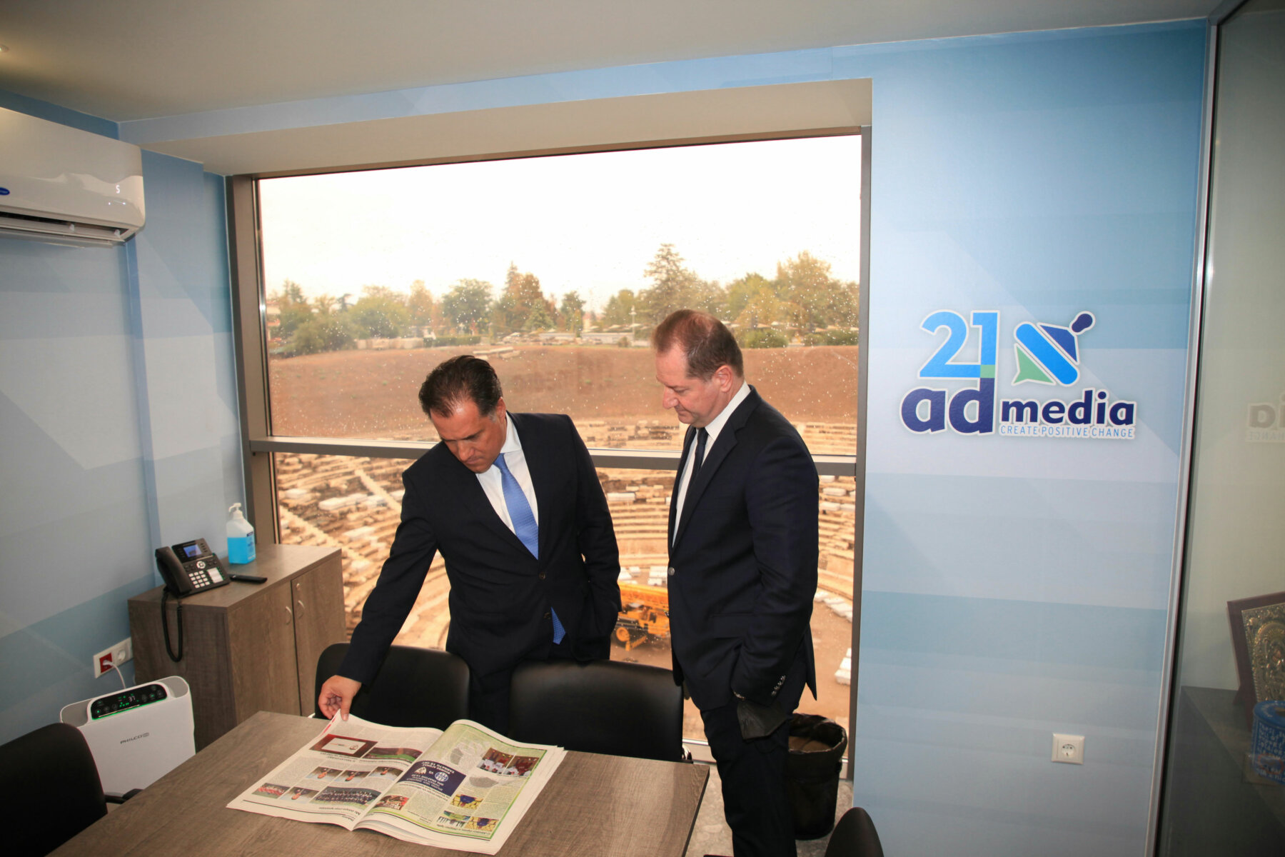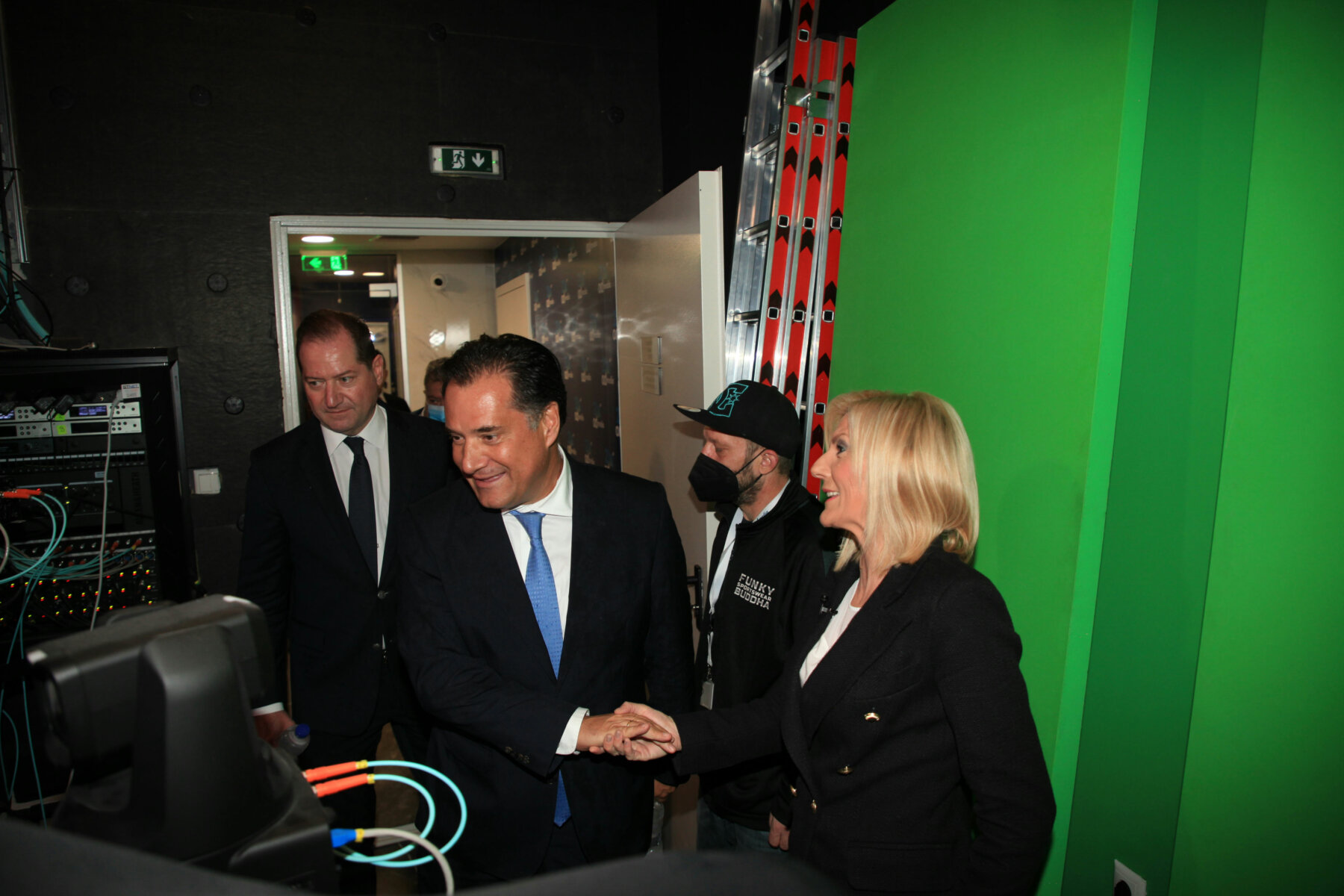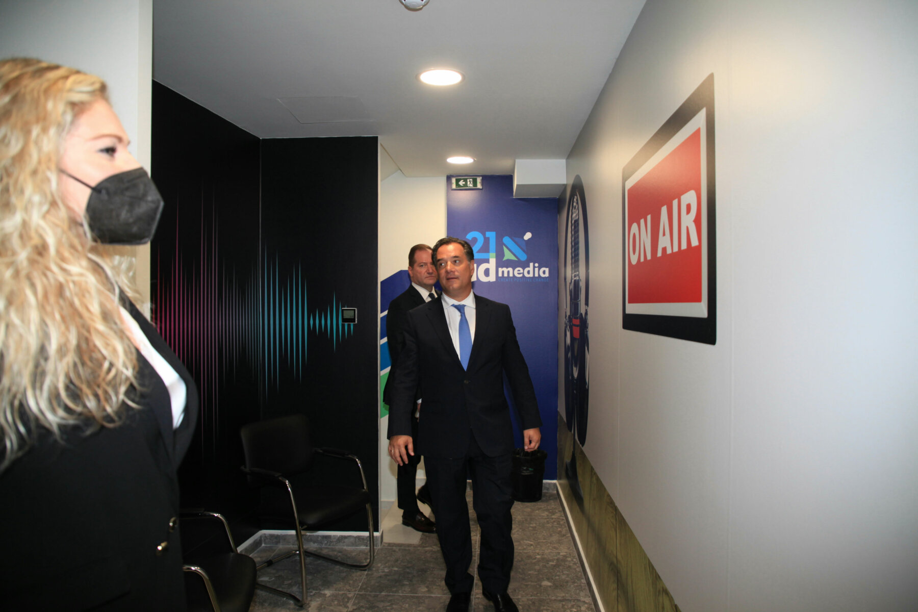 Στις κτιριακές εγκαταστάσεις της “21 admedia” ξεναγήθηκε ο υπουργός Ανάπτυξης και Επενδύσεων κ. Άδωνις Γεωργιάδης από τον πρόεδρο και τον αντιπρόεδρο του Δημοσιογραφικού Οργανισμού, Αχιλλέα και Γιάννη Νταβέλη. Ο υπουργός χαιρέτισε και συνομίλησε με τους δημοσιογράφους και τους τεχνικούς της “21 admedia”.