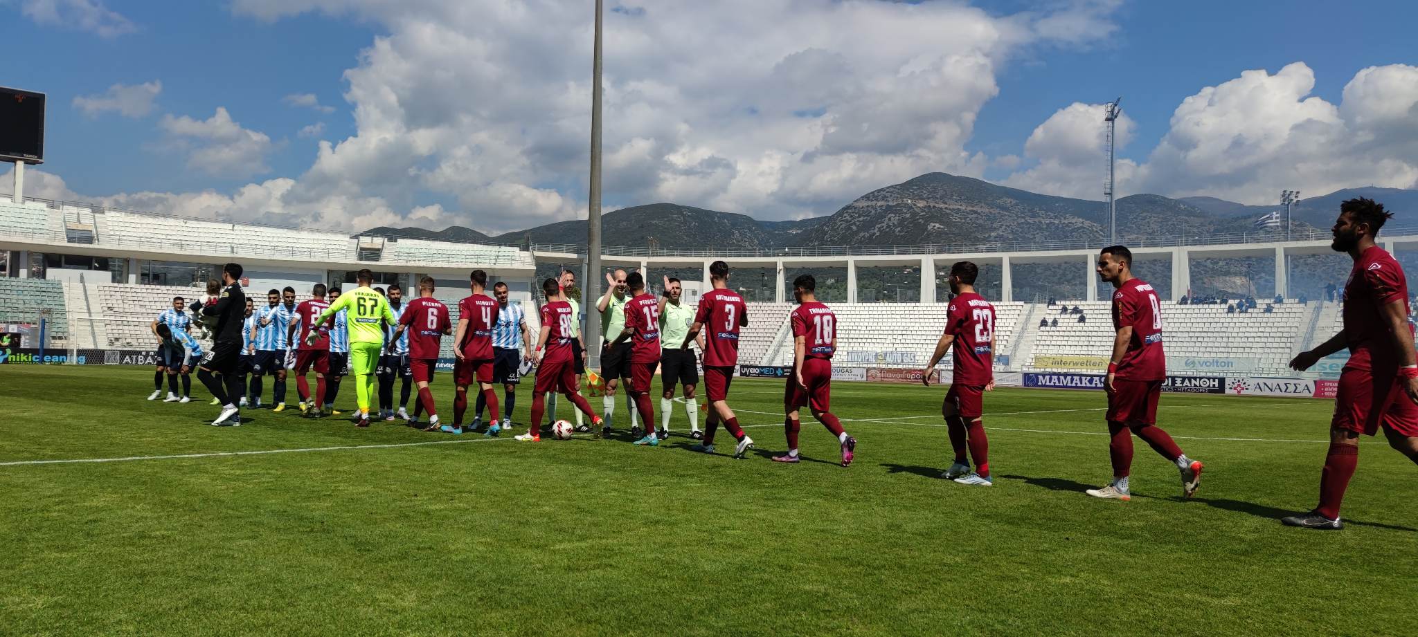 Στο παιχνίδι που επισκιάστηκε από τα επεισόδια η ΑΕΛ αν και βρέθηκε πίσω στο σκορ στο Πανθεσσαλικό στάδιο από τη Νίκη Βόλου από νωρίς και με μία εικόνα που δεν έφερνε αισιοδοξία, ο Μάριος Ογκμπόε με δύο τέρματά του στο 40′ και 45+2′ από το σημείο του πέναλτι έδωσε το προβάδισμα στους «βυσσινί» μετά τα πρώτα 45′. Το σκορ είχε ανοίξει ο Τζιώρας στο 16ο λεπτό για τους γηπεδούχους.
