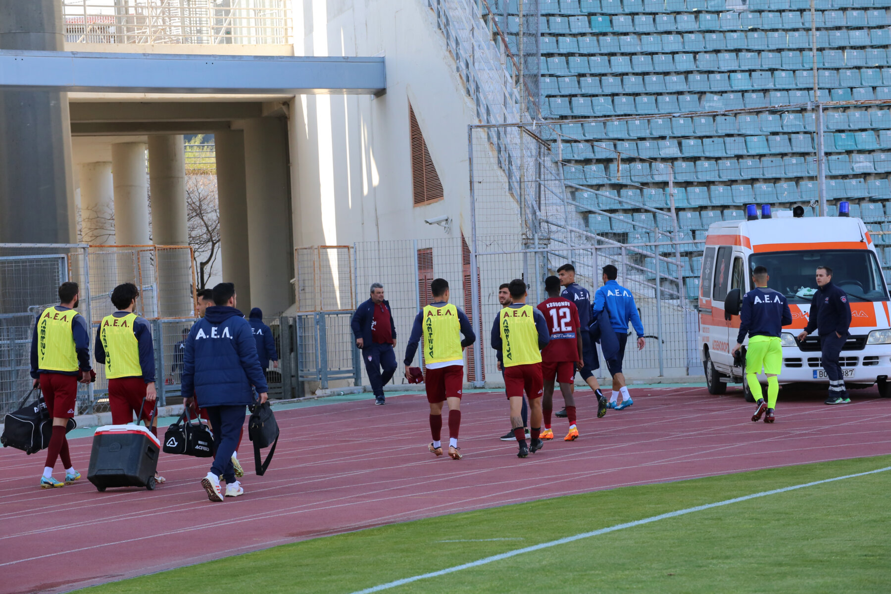 Βέβαια, το παιχνίδι «πάγωσε» καθώς οι οπαδοί της Νίκης Βόλου κινήθηκαν απειλητικά προς του οπαδούς της ΑΕΛ.