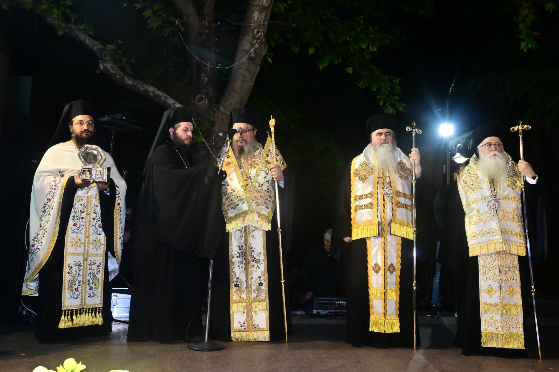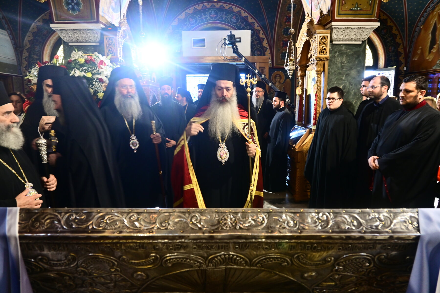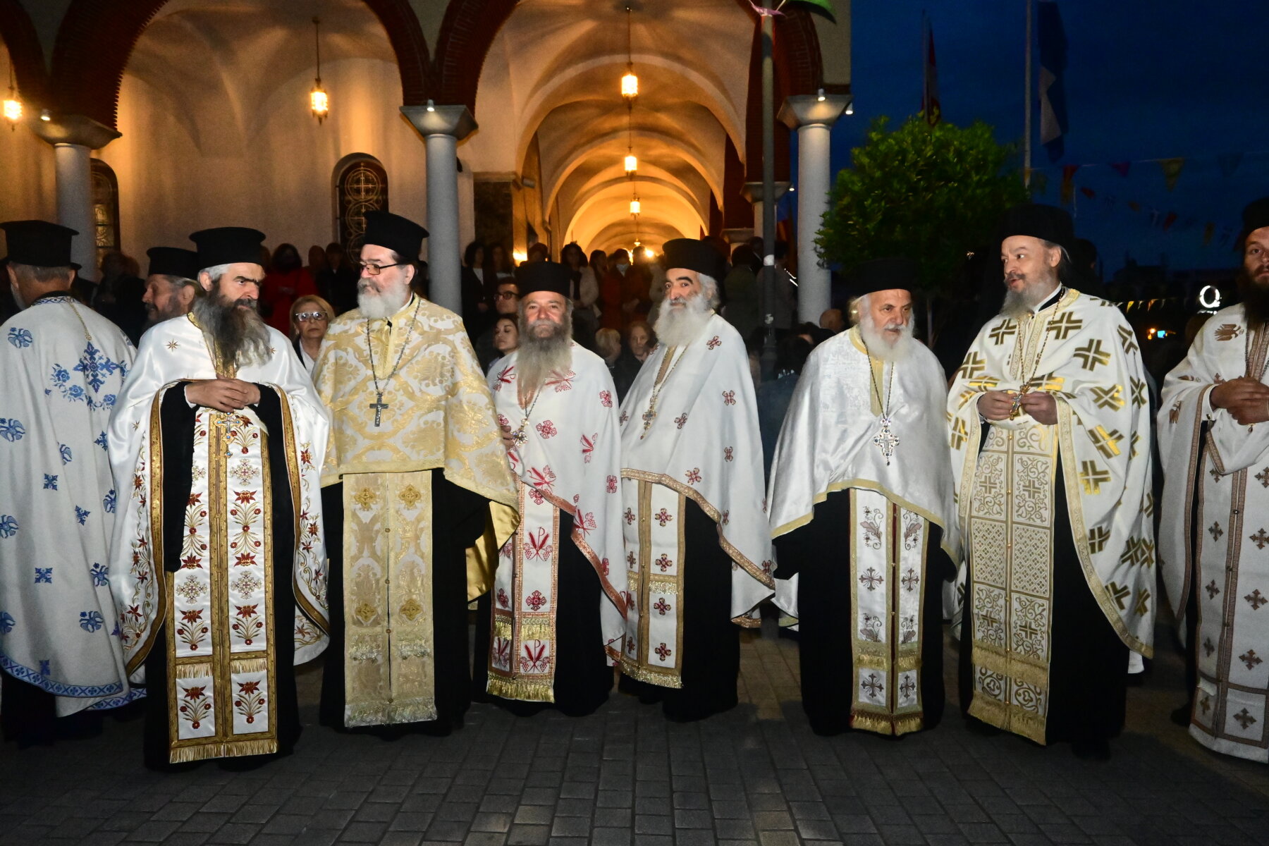 Ο πανηγυρικός εσπερινός τελέστηκε χοροστατούντων των: Μητροπολίτη Λαρίσης & Τυρνάβου Ιερωνύμου, Αρχιεπισκόπου Αυστραλίας Μακαρίου, Μητροπολίτη Φθιώτιδος Συμεών, Μητροπολίτη Νέας Κρήνης και Καλαμαριάς Ιουστίνου, Μητροπολίτη Ελασσώνος Χαρίτωνα και Μητροπολίτη Δημητριάδος και Αλμυρού Ιγνατίου.