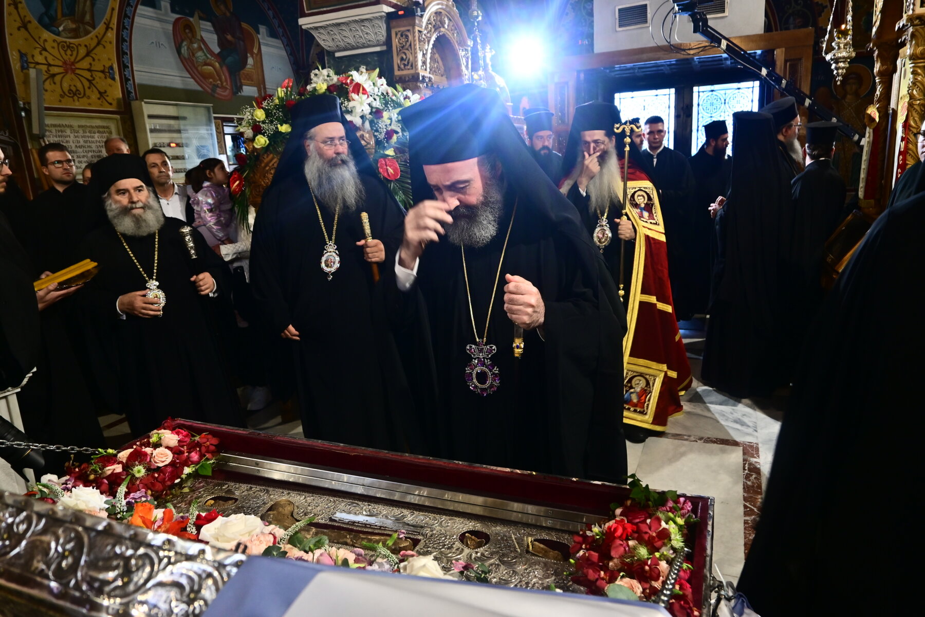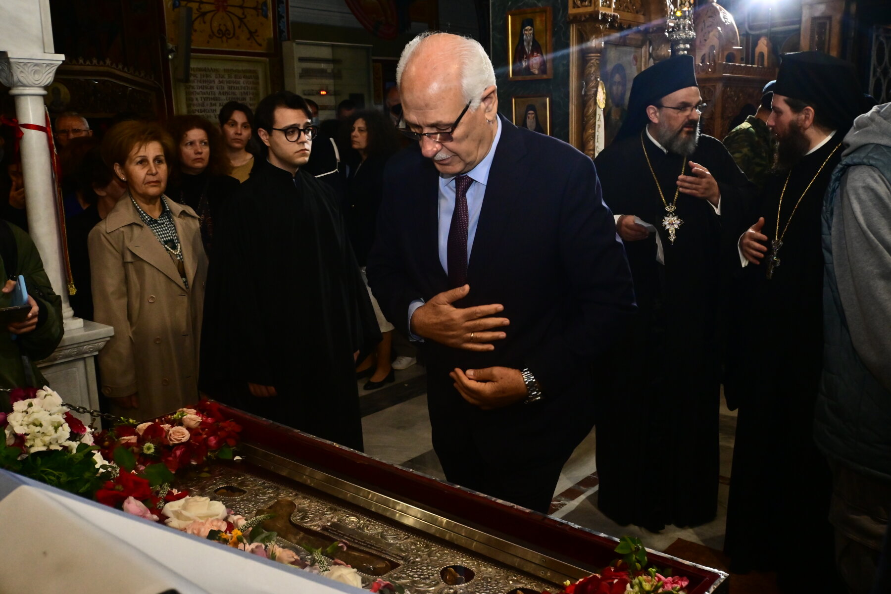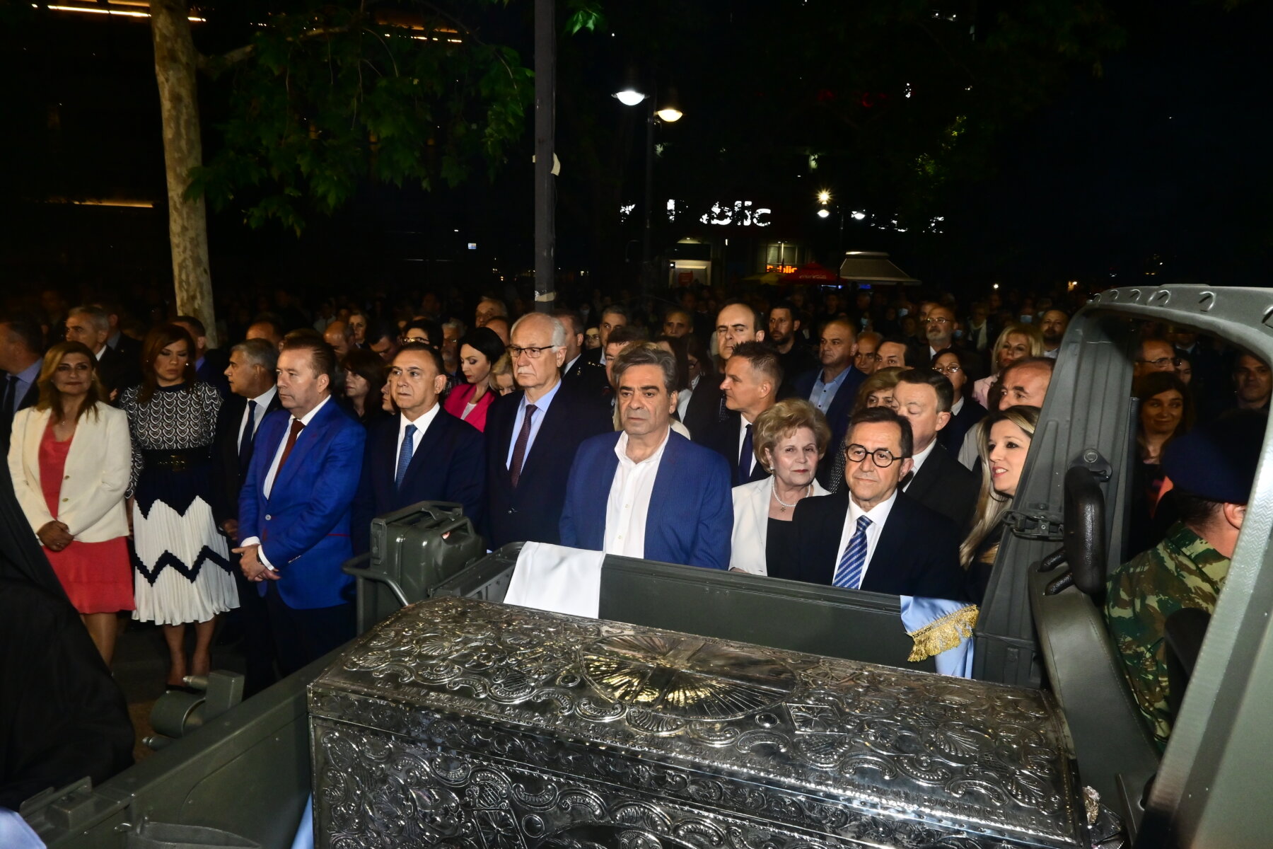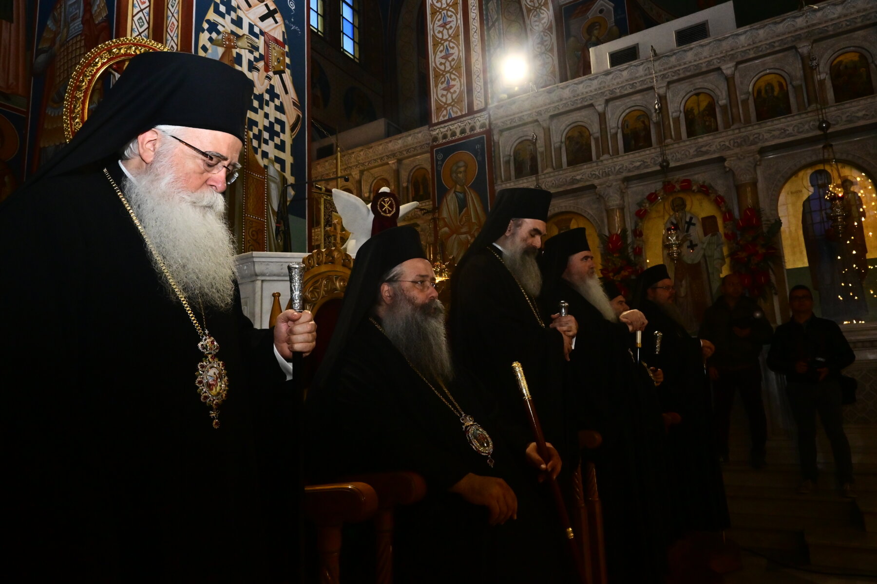 Ο πανηγυρικός εσπερινός τελέστηκε χοροστατούντων των: Μητροπολίτη Λαρίσης & Τυρνάβου Ιερωνύμου, Αρχιεπισκόπου Αυστραλίας Μακαρίου, Μητροπολίτη Φθιώτιδος Συμεών, Μητροπολίτη Νέας Κρήνης και Καλαμαριάς Ιουστίνου, Μητροπολίτη Ελασσώνος Χαρίτωνα και Μητροπολίτη Δημητριάδος και Αλμυρού Ιγνατίου.