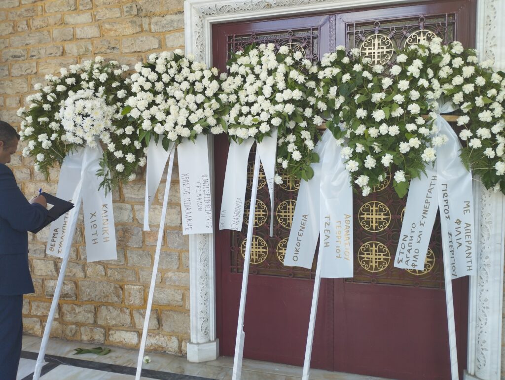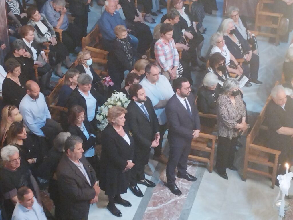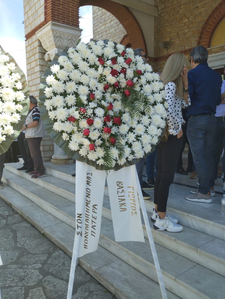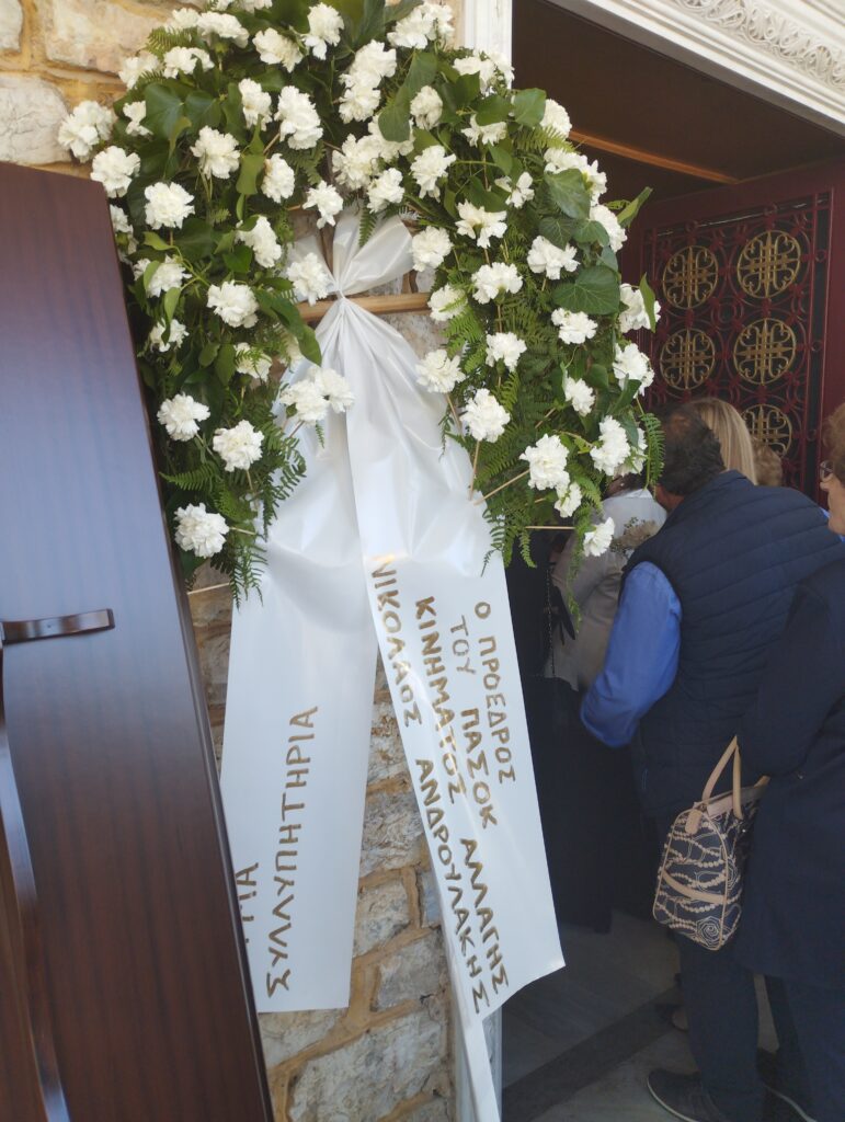 Στη νεκρώσιμο ακολουθία παρέστησαν εκπρόσωποι όλου του δημοκρατικού πολιτικού φάσματος, από τον Χρήστο Μιχαλάκη μέχρι τον Θεόδωρο Σκρέκα πρώην βουλευτή της Ν.Δ., ενώ αμέτρητα ήταν τα στεφάνια, μεταξύ των οποίων ξεχώρισε εκείνο του προέδρου του ΠΑΣΟΚ Νίκου Ανδρουλάκη ο οποίος, όπως έγραψε το trikalaopinion.gr, δεν μπόρεσε να παραβρεθεί λόγω της προεκλογικής του δραστηριότητας στη Χίο.