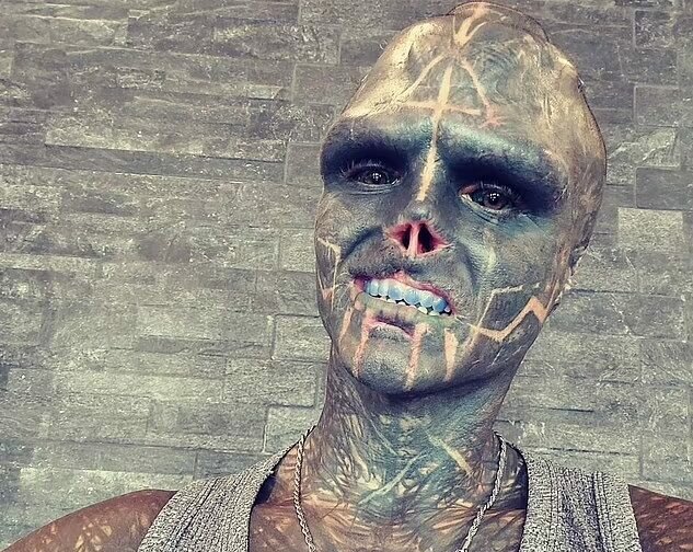Ένας άνδρας που λέει ότι είναι ένας «μαύρος εξωγήινος», με μελανόμορφα μάτια και πράσινη διχαλωτή γλώσσα, δήλωσε ότι η μεταμόρφωση του σώματός του έχει ολοκληρωθεί μόνο κατά 46% και θέλει ακόμα να ακρωτηριάσει το πόδι του.