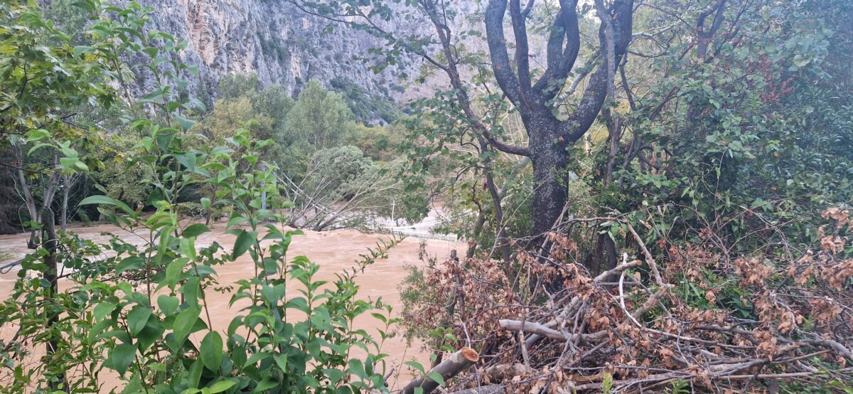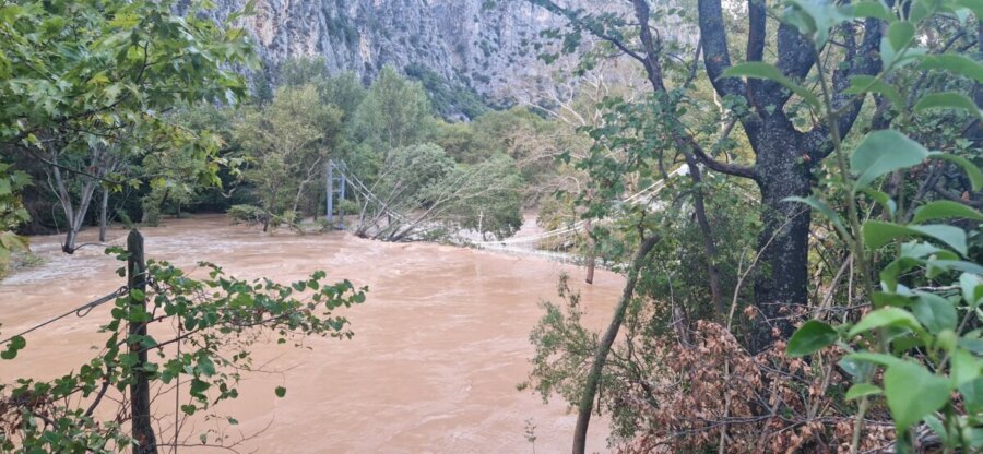 Το ύψος του νερού κατά σημεία ξεπερνά δέκα μέτρα, απειλώντας ακόμη και τη κρεμαστή πεζογέφυρα της Αγίας Παρασκευής.