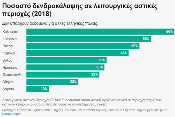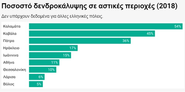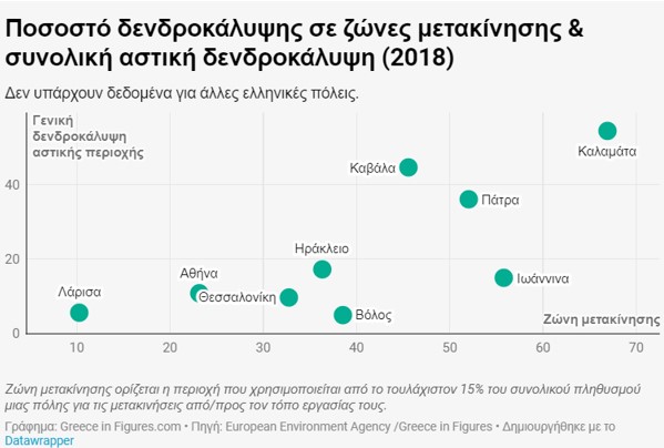 Μαζί με τον Βόλο, είμαστε επίσης στο κάτω μέρος της λίστας για την δενδροκάλυψη σε ζώνες μετακίνησης. Οκ, η λίστα δεν έχει τελειωμό, ας το παραδεχτούμε, δεν είμαστε σε καμία περίπτωση μία πράσινη πόλη.