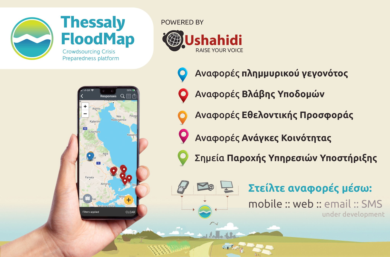 Η δωρεάν crowdsourcing εφαρμογή (app Πληθοπορισμού) Thessaly Floodmap είναι μια πρακτική εθελοντικής συλλογής πληροφοριών από μία μεγάλη και ανοικτή ομάδα ανθρώπων ή κοινοτήτων μέσω internet, smartphones (email & SMS θα είναι Σύντομα Διαθέσιμα). Δημιουργήθηκε από εθελοντές, στην πλατφόρμα ανοιχτού κώδικα Ushahidi, με στόχο να βοηθήσει τις προσπάθειες ανάκαμψης στη Θεσσαλία μετά τις καταστροφικές πλημμύρες του Σεπτεμβρίου 2023. Μπορείτε να βρείτε την Thessaly FloodHub – Crowdsourcing Crisis Preparadiness Platform στον σύνδεσμο https://thessalyfloods.ushahidi.io/views/map