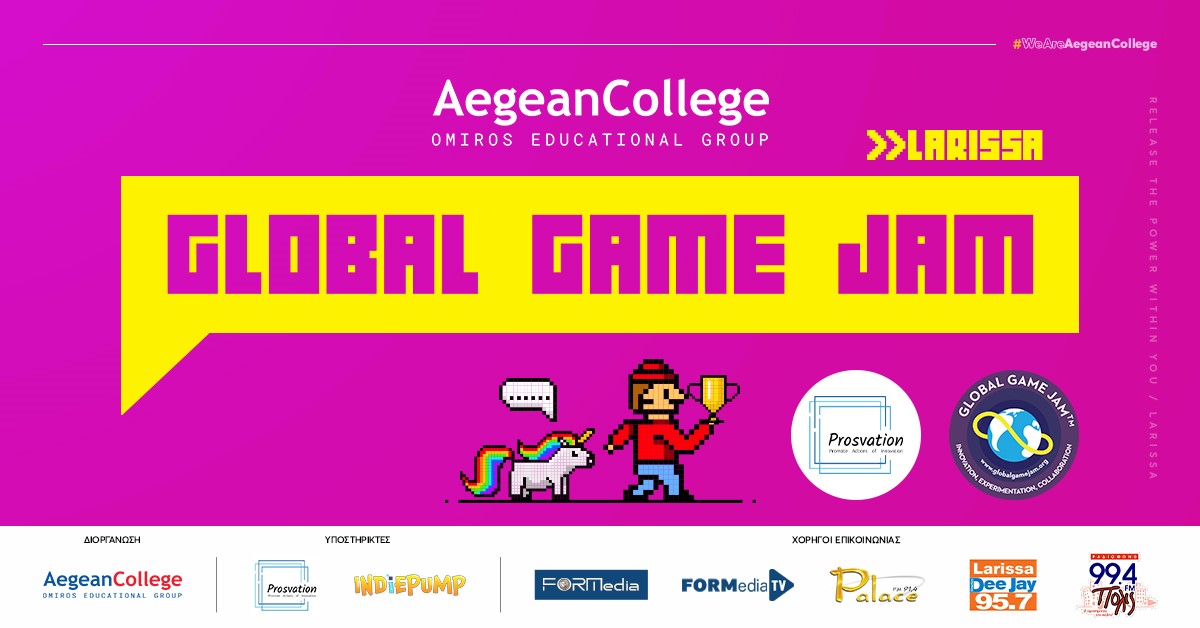 Το Global Game Jam® (GGJ), είναι το μεγαλύτερο event δημιουργίας παιχνιδιών παγκοσμίως, και λαμβάνει χώρα συγχρόνως σε πολλά σημεία σε όλο το κόσμο. Σκεφτείτε το ως ένα Hackathon, που επικεντρώνεται στην δημιουργία παιχνιδιών. Στο διασυνδεδεμένο κόσμο σήμερα, μπορούμε να συνεργαζόμαστε, να γινόμαστε δημιουργικοί να μοιραζόμαστε εμπειρίες και να εκφραζόμαστε με ποικίλους τρόπους χρησιμοποιώντας τα ηλεκτρονικά παιχνίδια.