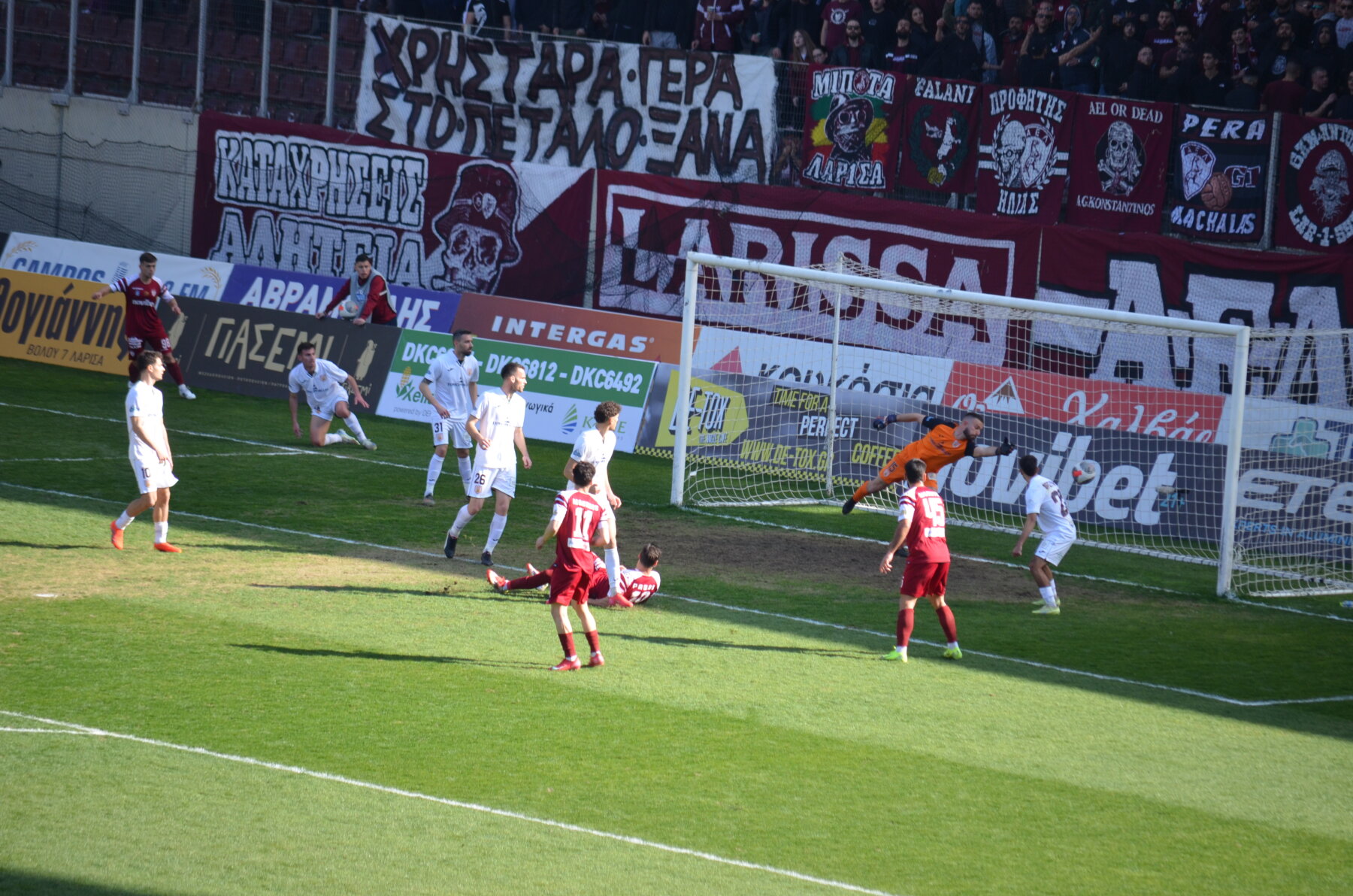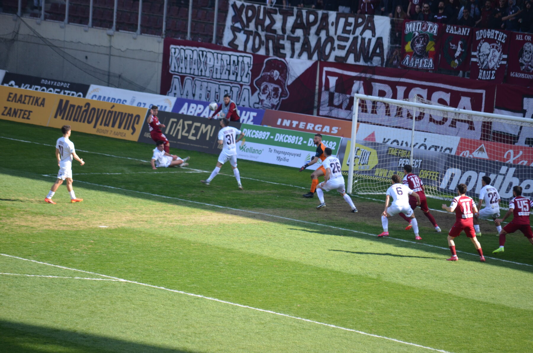 Την ίδια κατάληξη είχε και η φάση του 38΄όταν ο Μούργος έδωσε στον Στίνα, αυτός με ωραία προσποίηση απέφυγε τον αντίπαλό του μπήκε στην περιοχή, σούταρε και ενστικτωδώς με τα πόδια ο Κασαπίδης έδιωξε σε κόρνερ.