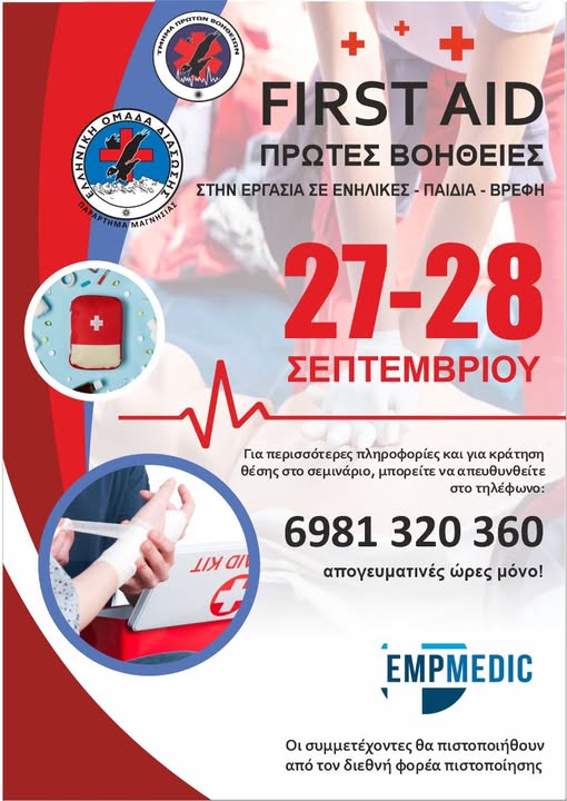 Με αφορμή το πιστοποιημένο διήμερο σεμινάριο πρώτων βοηθειών που διοργανώνεται στις 27 και 28 Σεπτεμβρίου στον Βόλο, ο κ. Παπαμαρκάκης υπογράμμισε τη σημασία της εκπαίδευσης των πολιτών σε κρίσιμες δεξιότητες. Το σεμινάριο περιλαμβάνει πλήρη εκπαίδευση σε ΚΑΡΠΑ, πλάγια θέση ασφαλείας, πνιγμονή, επιληψία, αλλεργικό σοκ, και ειδικές τεχνικές για βρέφη και παιδιά.