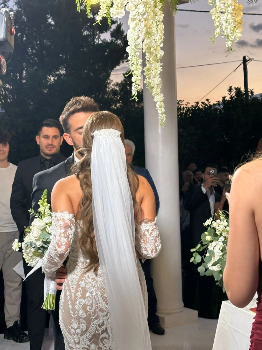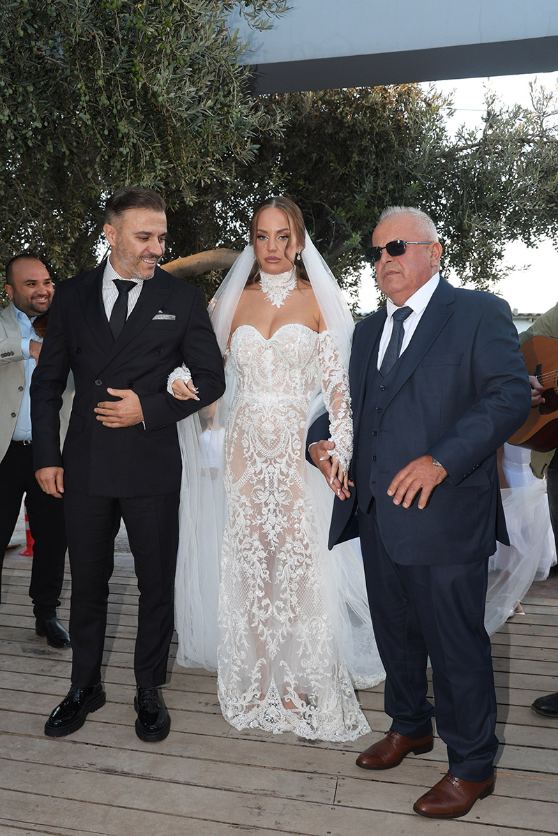 Η Ανδρομάχη έφτασε στην εκκλησία συνοδευόμενη από τον πατέρα της, ενώ ο γαμπρός την περίμενε στα σκαλιά της εκκλησίας, πιο χαρούμενος από ποτέ.