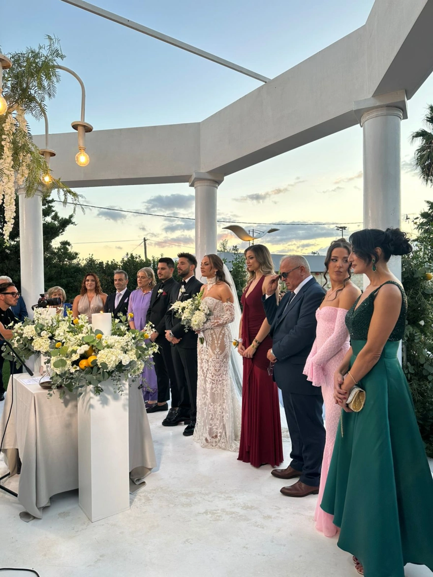 Η διακόσμηση του χώρου κινήθηκε στα χρώματα του λευκού και του κίτρινου. Μετά το διπλό μυστήριο θα ακολουθήσει καθιστό δείπνο στον ίδιο χώρο, με πλούσιο μενού σε εντυπωσιακά στολισμένες ροτόντες στους ίδιους χρωματικούς τόνους.