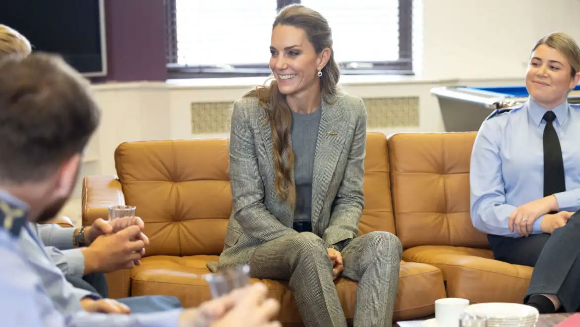 Κατά την πρόσφατη εμφάνισή της στη στρατιωτική βάση RAF Coningsby, η Kate Middleton εμφανίστηκε με ένα γκρι ταρτάν κοστούμι, αλλά αντί να το συνδυάσει με το αναμενόμενο πουκάμισο, επέλεξε ένα λεπτό, φθινοπωρινό πλεκτό στην ίδια χρωματική παλέτα.