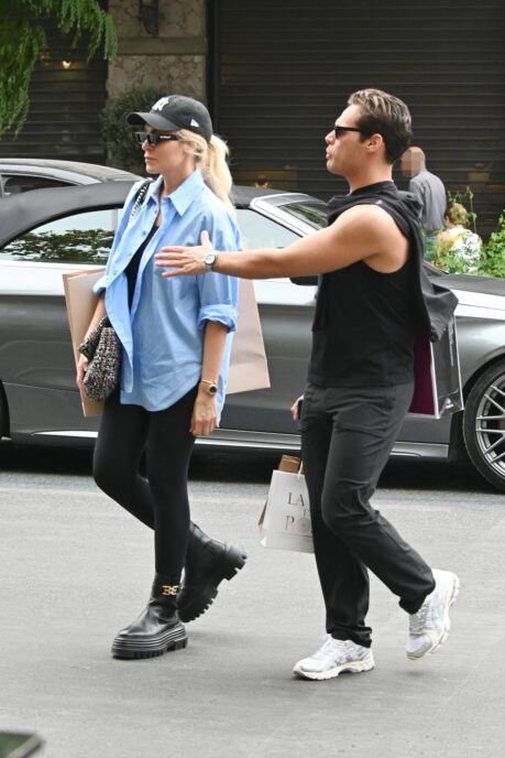 Οι φωτογραφίες τραβήχτηκαν τη στιγμή που η παρουσιάστρια απολάμβανε τη βόλτα της με τον καλό φίλο της, Ανέστη Ευαγγελόπουλο, κρατώντας σακούλες από γνωστά καταστήματα.