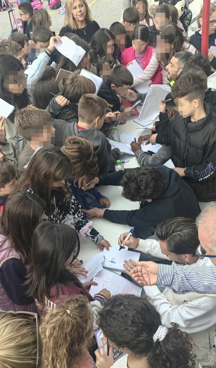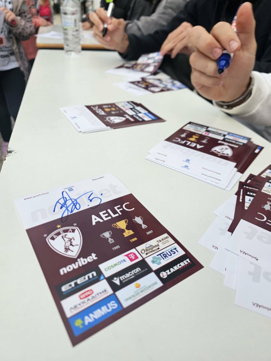 Τα παιδιά έδειξαν ιδιαίτερο ενθουσιασμό και συμμετείχαν με χαρά από την πρώτη στιγμή κάνοντας υποδοχή με συνθήματα. Ήρθαν κοντά με τους ποδοσφαιριστές της ΑΕΛ Novibet, έθεσαν ερωτήματα, απορίες κι έβγαλαν πολλές φωτογραφίες σε ένα ευχάριστο κλίμα και άκρως ενθαρρυντικό για τους αθλητές μας. Οι μαθητές τραγούδησαν δυνατά τον ύμνο της ομάδας μας και στο τέλος έλαβαν αυτόγραφα.