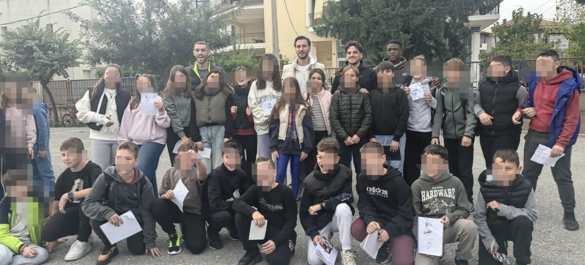 Παρόντες ήταν οι ποδοσφαιριστές Θανάσης Παπαγεωργίου, Σάββας Μούργος, Λαυρέντης Κοσσονού, Πέτρος Μπαγκαλιάνης, ο γενικός αρχηγός Βαγγέλης Νάστος, ο υπεύθυνος Scouting Πέτρος Καριάτογλου, ο υπεύθυνος Επικοινωνίας Δημήτρης Πετρωτός και ο υπεύθυνος Μarketing & Δημ. Σχέσεων Αποστόλης Νταϊλιάνης όπου μαζί με τον αρχηγό της ομάδας έκαναν την παρουσίαση και μίλησαν στα παιδιά για την ιστορική διαδρομή και τις αξίες που πρεσβεύει η «βασίλισσα του κάμπου».