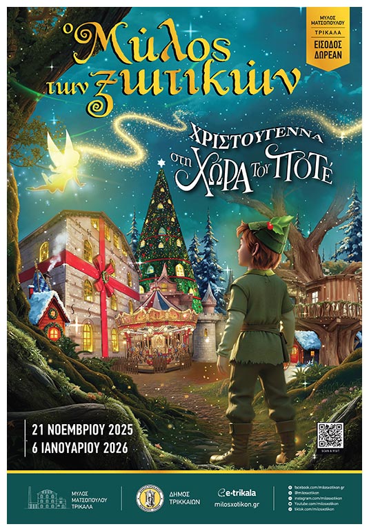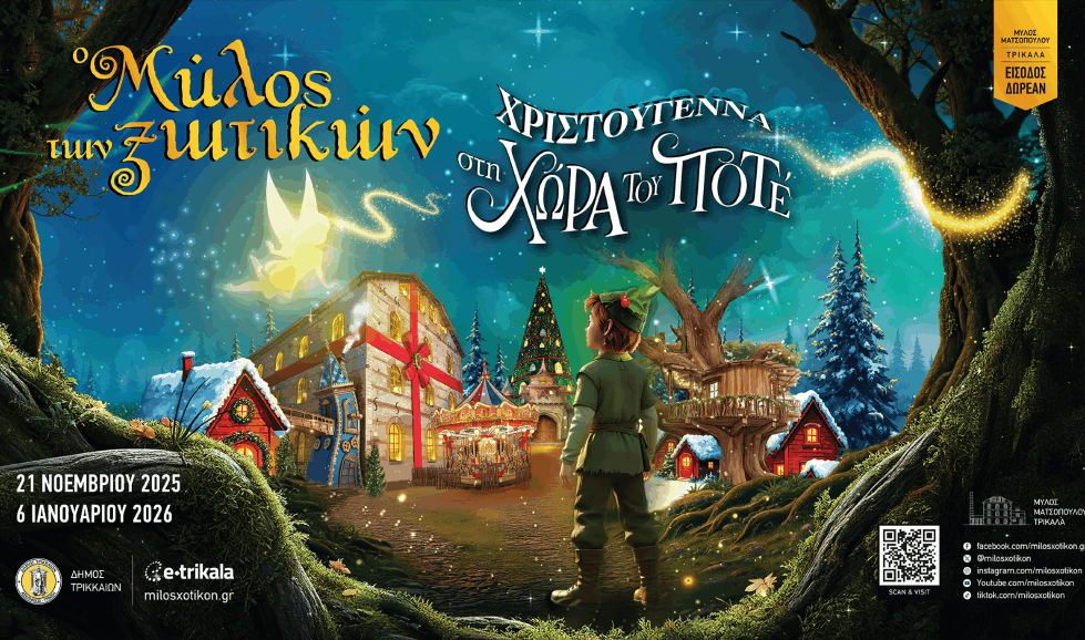 Η φετινή χριστουγεννιάτικη περίοδος στα Τρίκαλα υπόσχεται περισσότερη μαγεία από ποτέ, καθώς ο Μύλος των Ξωτικών ετοιμάζεται να ανοίξει τις πύλες του για 14η χρονιά με θέμα «Χριστούγεννα στη Χώρα του Ποτέ». Η νέα πρόεδρος της e-Trikala Α.Ε., Έφη Λεβέντη, μιλώντας στην εκπομπή του FORMEDIA RADIO 99.8 «Ennitime is a good time» με την Έννη Λεβέντη, αποκάλυψε τις λεπτομέρειες της φετινής διοργάνωσης, τονίζοντας ότι «θέλουμε να μοιράσουμε εκατομμύρια χαμόγελα, ψυχολογία και διασκέδαση, μαζί με τον Πίτερ Παν, την Τίνκερ Μπελ, τη Γουέντι, τον Κάπτεν Χουκ και όλα τα παιδιά της Χώρας του Ποτέ».