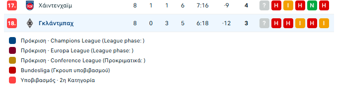 Τέλος η Χόφενχαϊμ επικράτησε με 3-1 της Χάιντενχαϊμ, με τον Ασλάνι να ανοίγει το σκορ για τους γηπεδούχους στο 18′ και τον Λεμπέρλ να κάνει το 2-0 στο 45+2. Ο Κράμαριτς έκανε το 3-0 στο 63′, με τον Σίμερ να μειώνει σε 3-1 στο 75′.