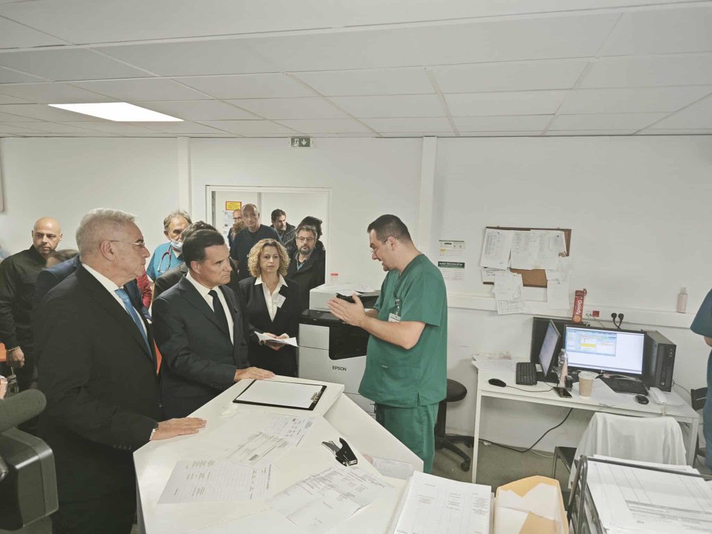 Ο υπουργός, συνοδευόμενος από τον Διοικητή της 5ης ΥΠΕ Φώτη Σερέτη και τον Διοικητή του ΓΝΛ Γρηγόρη Βλαχάκη, επιθεώρησε τον χώρο των εργασιών και ανακοίνωσε πως ο προσωρινός χώρος των ΤΕΠ, που λειτουργεί έως την ολοκλήρωση του κυρίως έργου, θα μετατραπεί σε ΤΕΠ Παίδων, προσφέροντας αυτόνομη και ταχύτερη φροντίδα σε μικρούς ασθενείς. «Είναι ένα πολύ μεγάλο έργο», δήλωσε ο κ. Γεωργιάδης, «γιατί με την ευκαιρία του κάνουμε δύο σπουδαία πράγματα: αναβαθμίζουμε τον μηχανολογικό εξοπλισμό του νοσοκομείου, δίνοντάς του ζωή για 15 με 20 χρόνια, και δημιουργούμε ένα σύγχρονο παιδιατρικό ΤΕΠ, όπου τα παιδιά θα έχουν προτεραιότητα στη νοσηλεία και τη θεραπεία». Ιδιαίτερη αναφορά έκανε και στην εφαρμογή του ψηφιακού βοηθού στα ΤΕΠ, που λειτουργεί με τη βοήθεια Τεχνητής Νοημοσύνης, τονίζοντας ότι το σύστημα εφαρμόζεται πιλοτικά στη Λάρισα και στη Νίκαια με πολύ θετικά αποτελέσματα. «Το παρακολουθώ στενά γιατί θέλω να το επεκτείνουμε σε όλα τα νοσοκομεία της χώρας», σημείωσε. «Θα είναι η επόμενη μεγάλη μεταρρύθμιση μετά το βραχιολάκι, ώστε να εξοικονομούμε χρόνο και να απελευθερώνουμε ιατρικό προσωπικό για την ουσιαστική φροντίδα των ασθενών».