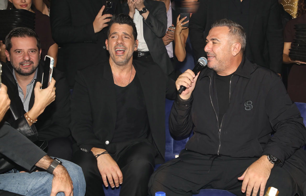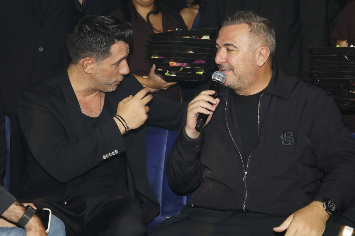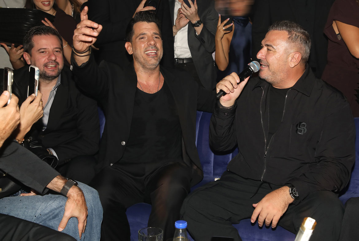Ο φωτογραφικός μας φακός απαθανάτισε όσα έγιναν στο μαγαζί, καθώς κάποια στιγμή, ο Θοδωρής Φέρρης κατευθύνθηκε στο τραπέζι τους και έδωσε το μικρόφωνο στον Αντώνη Ρέμο και τραγούδησαν μαζί.