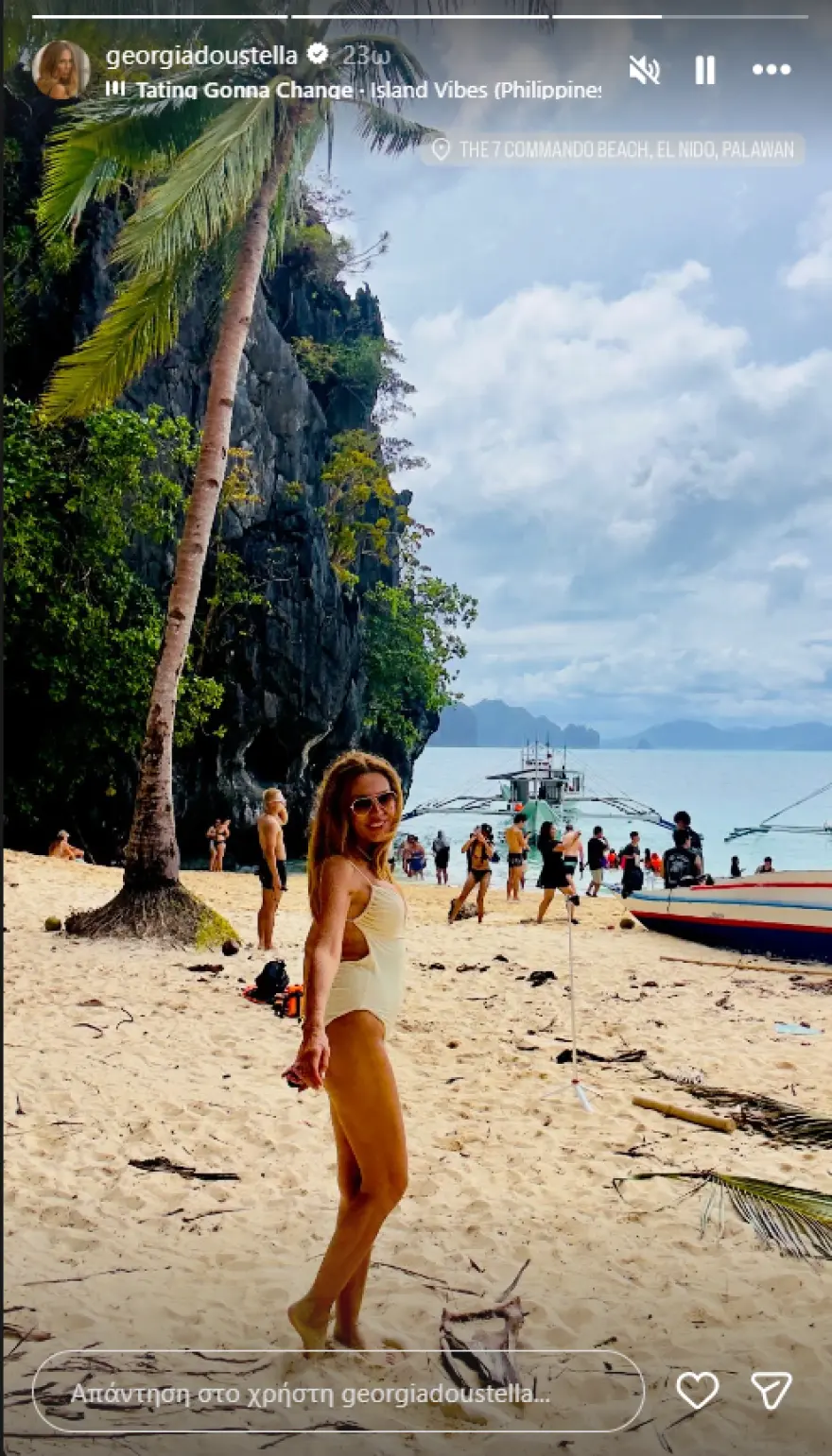 Λίγο αργότερα δημοσίευσε ακόμη μία φωτογραφία, στην οποία εμφανίζεται χαμογελαστή με μαγιό σε παραλία της περιοχής.