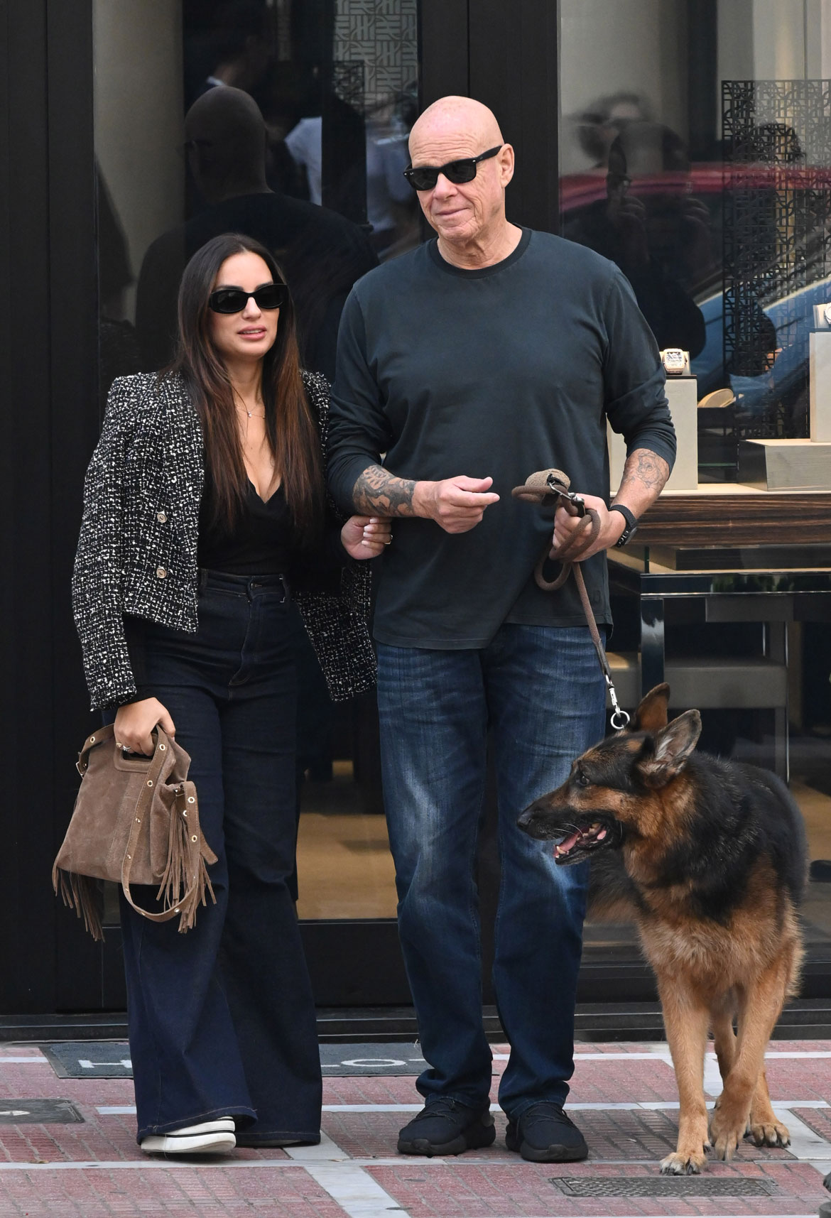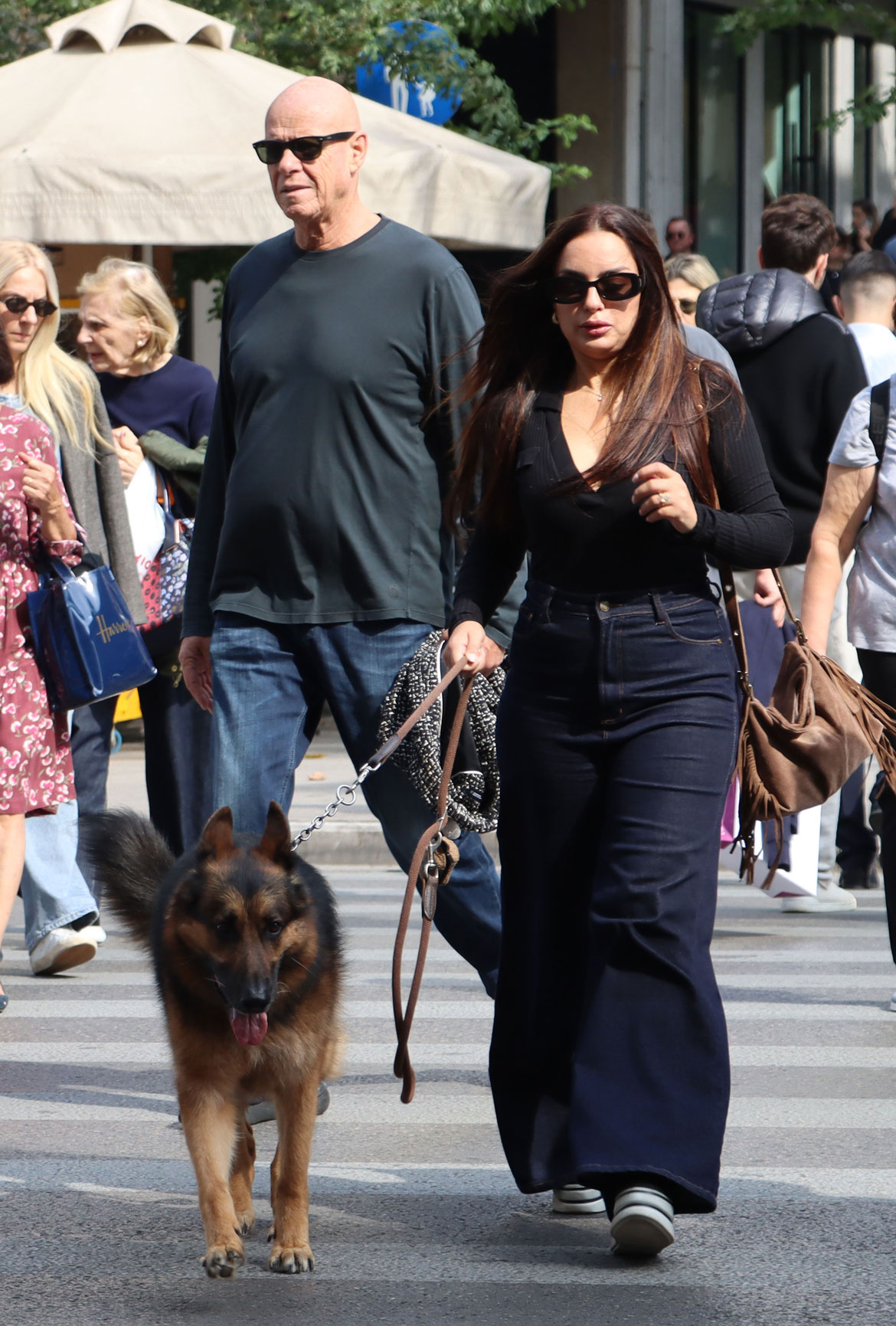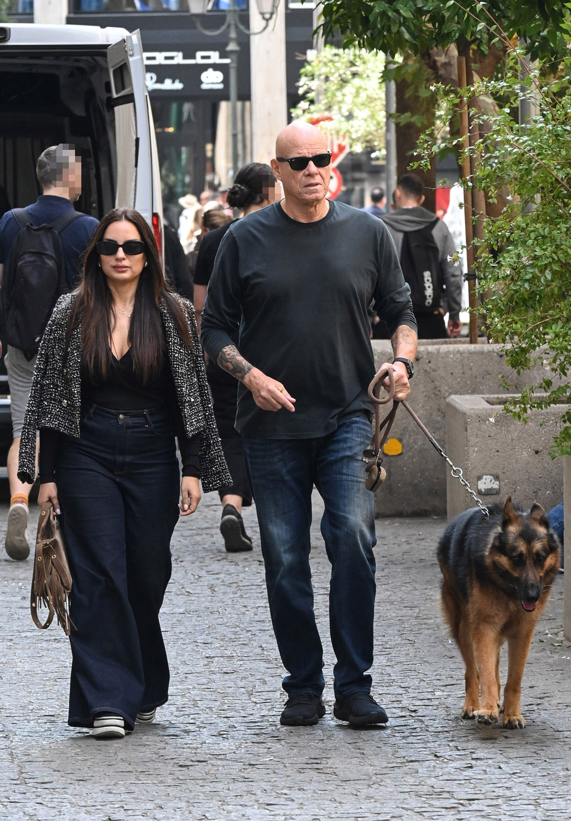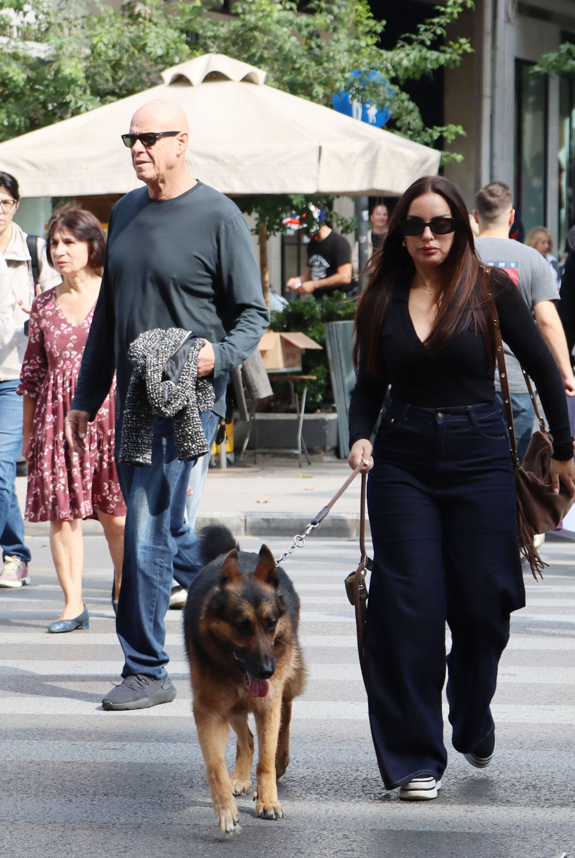 Το ζευγάρι περπατούσε χαλαρά, δίπλα δίπλα, μαζί με τον αγαπημένο τους σκύλο, μιλώντας μεταξύ τους και αδιαφορώντας για τα αδιάκριτα βλέμματα και τα φλας των παπαράτσι.