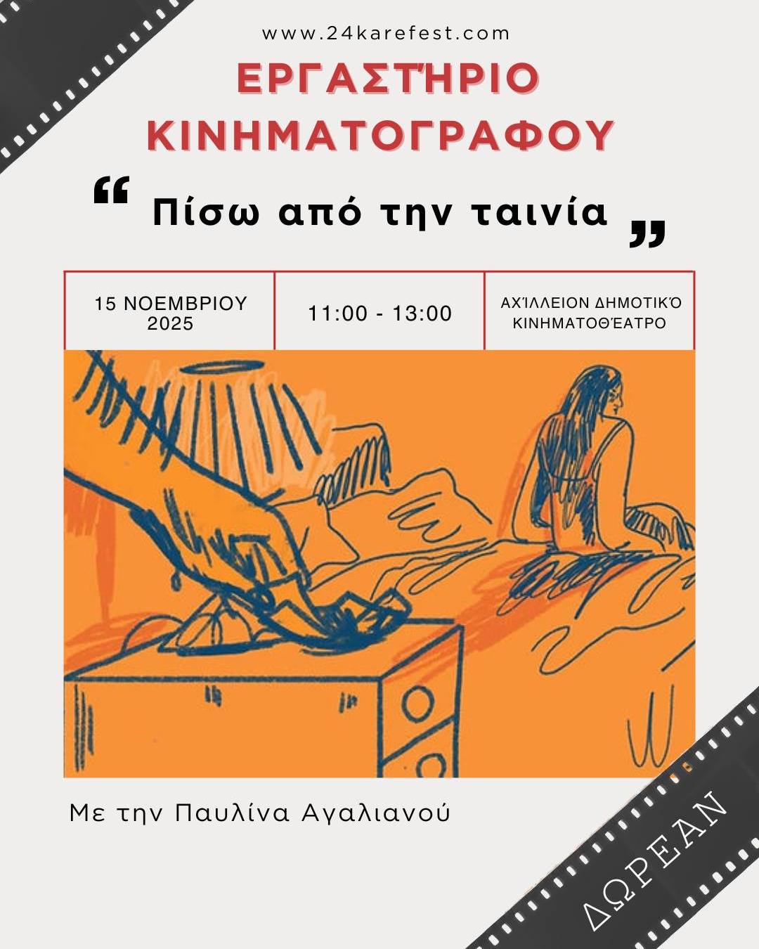 Από τις 14 έως τις 16 Νοεμβρίου 2025, το Δημοτικό Κινηματοθέατρο Αχίλλειον στον Βόλο φιλοξενεί το 2ο Νεανικό Φεστιβάλ Ταινιών Μικρού Μήκους “24 Καρέ”, μια διοργάνωση που, για δεύτερη συνεχή χρονιά, έρχεται να επιβεβαιώσει ότι ο κινηματογράφος έχει στέρεες ρίζες και δυναμικό μέλλον στην πόλη. Το φεστιβάλ, που απευθύνεται σε νέους δημιουργούς έως 35 ετών, συνδιοργανώνεται από την κινηματογραφική ομάδα του Πανεπιστημίου Θεσσαλίας “24 Καρέ” και τον Δήμο Βόλου, συμπίπτοντας με τη συμπλήρωση των 100 χρόνων λειτουργίας του Αχίλλειου.