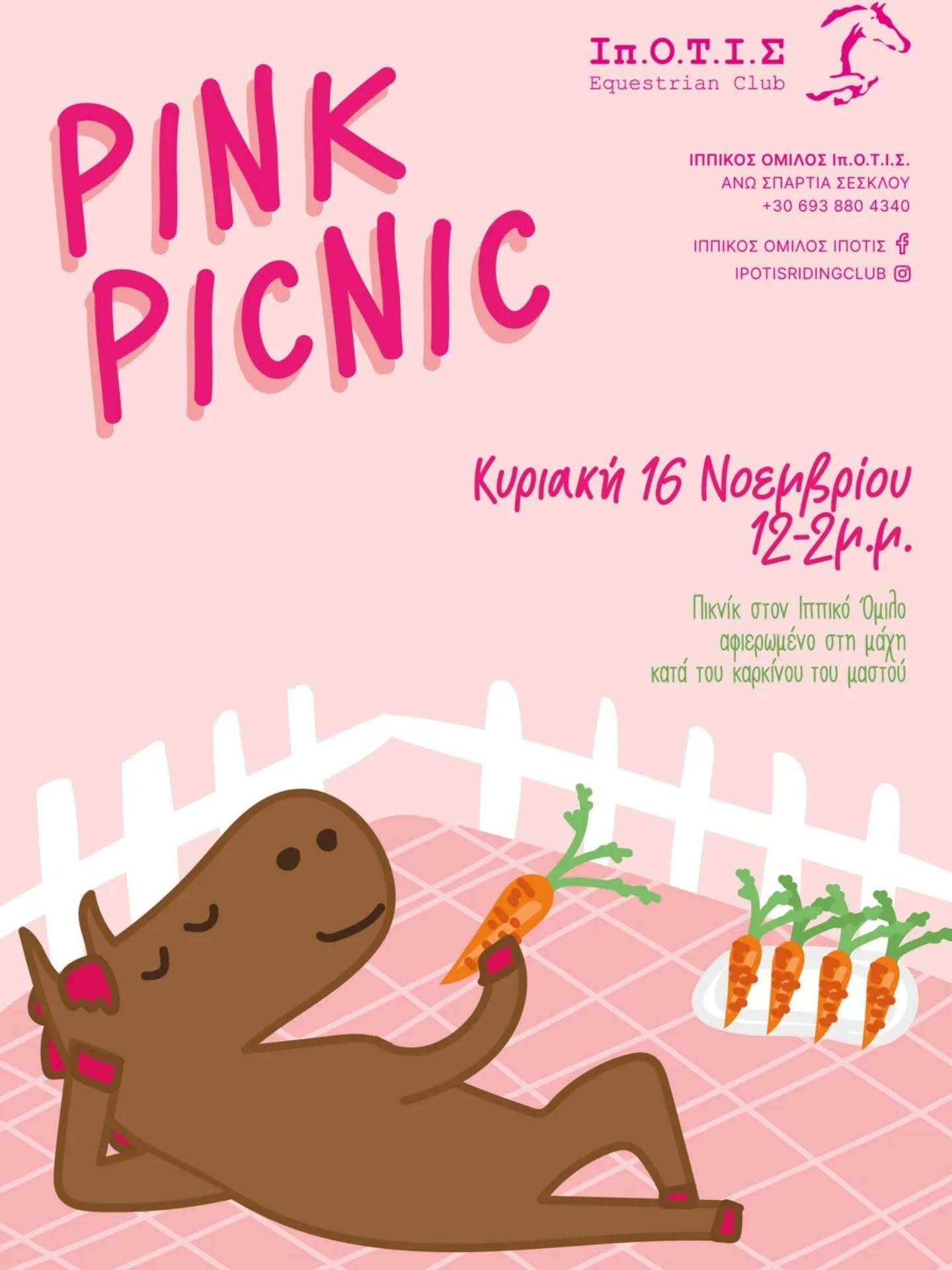 Η σχεδιάστρια κοσμημάτων Ιωάννα Γλυνού, γνωστή για τη δημιουργικότητα και την κοινωνική της ευαισθησία, μας προσκαλεί σε μια διαφορετική φιλανθρωπική δράση γεμάτη χρώμα, χαρά και ελπίδα. Την Κυριακή 16 Νοεμβρίου, από τις 12:00 έως τις 14:00, ο Ιππικός Όμιλος “Ιπ.Ο.ΤΙ.Σ.” λίγο έξω από τον Βόλο, μεταμορφώνεται σε έναν χώρο αλληλεγγύης και ψυχαγωγίας μέσα από το “Pink Picnic”, μια εκδήλωση αφιερωμένη στη μάχη ενάντια στον καρκίνο του μαστού.