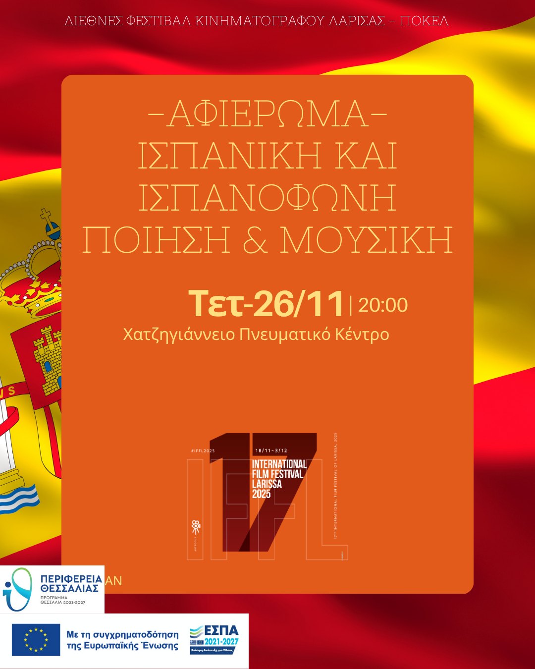 Το πρόγραμμα περιλαμβάνει επίσης αφιέρωμα στον Αλέξη Δαμιανό, προβολές για την Παγκόσμια Ημέρα Ατόμων με Αναπηρία, καθώς και μια μεγάλη έκθεση αυθεντικών κινηματογραφικών αφισών από τη δεκαετία του ’50 έως σήμερα. Ξεχωριστή θέση κατέχει και η βραδιά ισπανικής ποίησης και κινηματογράφου, με ποιητικές ενότητες αφιερωμένες στον Λόρκα, τον Νερούδα και τη σύγχρονη ισπανόφωνη σκηνή.
