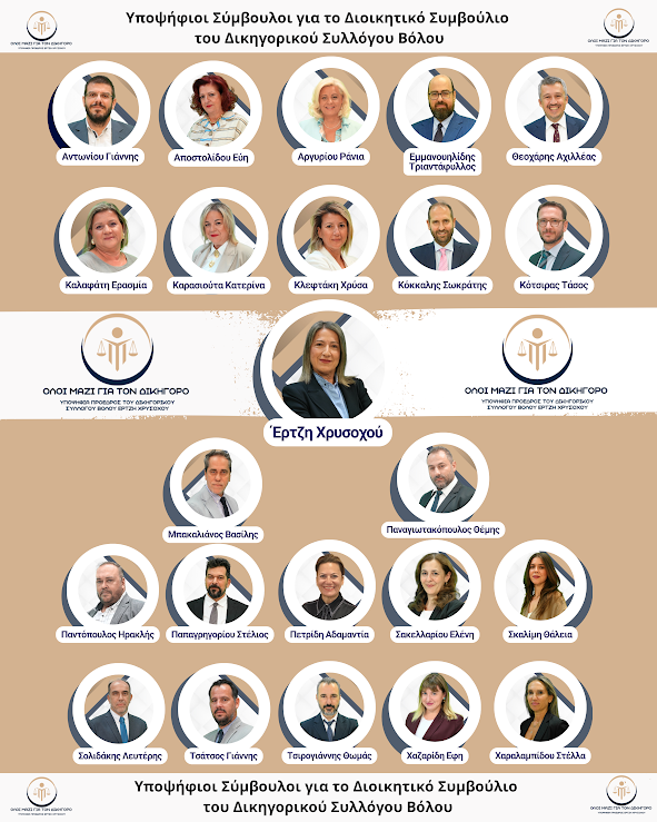 Οι προσεχείς εκλογές για την ανάδειξη προέδρου στον Δικηγορικό Σύλλογο Βόλου πρόκειται να σηματοδοτήσουν μία νέα εποχή, καθώς, 149 χρόνια μετά την ίδρυσή του, με τις υποψηφιότητες της Έρτζης Χρυσοχού και της Μαρίνας Χρυσοβελώνη, ο Σύλλογος θα αποκτήσει γυναίκα πρόεδρο.