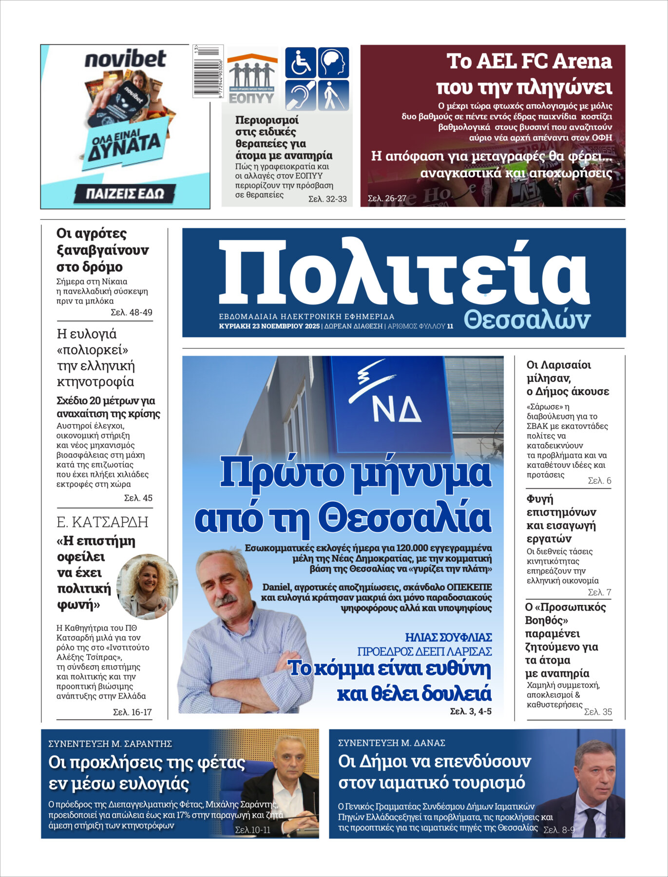 Γράφει η Βιβή Ζαχοπούλου από την «Πολιτεία Θεσσαλών» Κυριακή 23 Νοεμβρίου 2025