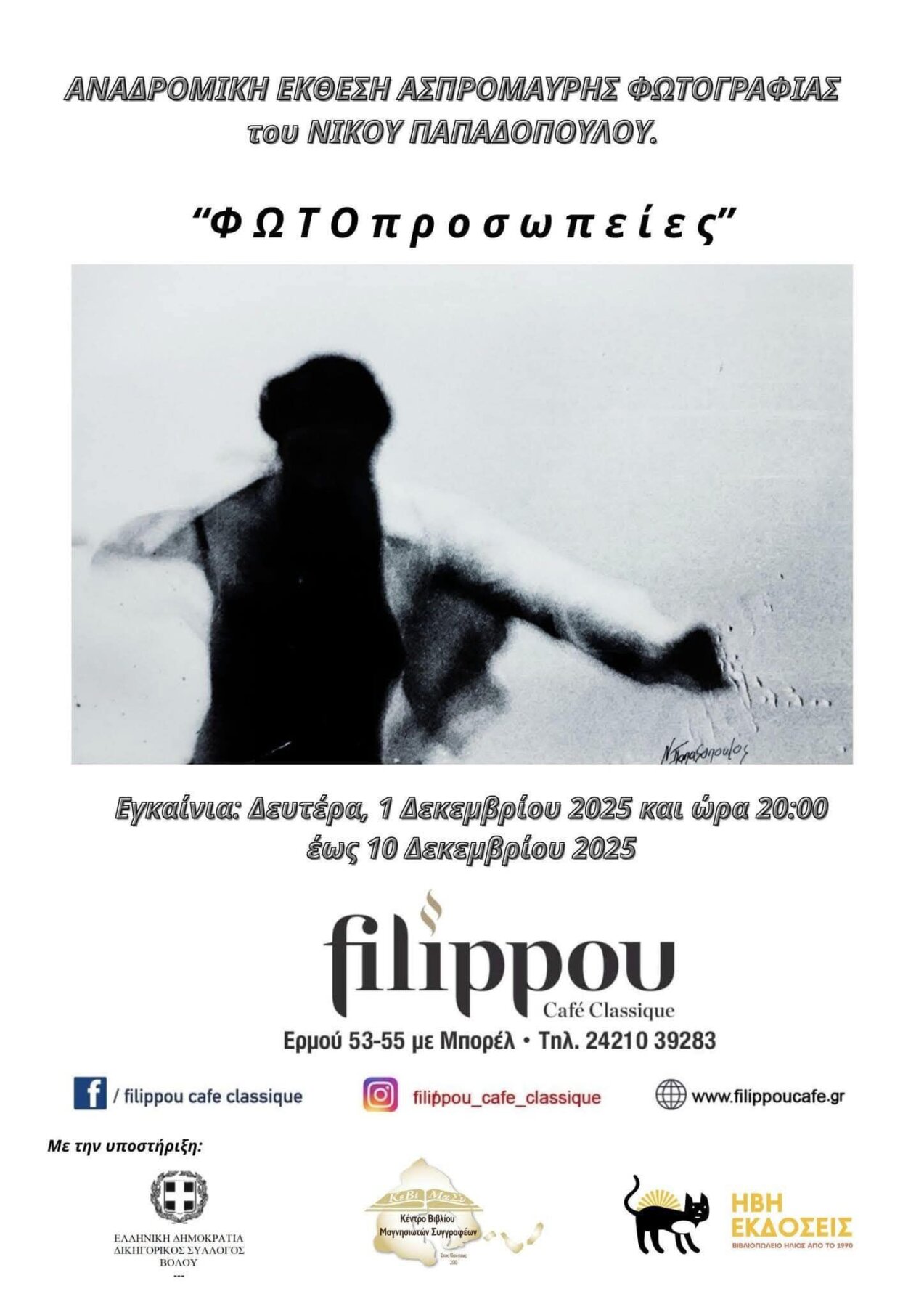 Μια ταξιδιωτική διαδρομή στο χρόνο και στο συναίσθημα προσφέρει η ατομική αναδρομική έκθεση φωτογραφίας του Νίκου Παπαδόπουλου, που φιλοξενείται από την 1 έως τις 10 Δεκεμβρίου στο «Filippou cafe Classique», στον Βόλο. Οι εικόνες, αναλογικής λήψης και εμφάνισης σε σκοτεινό θάλαμο, αποτελούν ένα πυκνό αρχείο τριών δεκαετιών, από το 1993 έως το 2005, αποτυπώνοντας στιγμές, πρόσωπα και συναισθηματικές διαδρομές του δημιουργού.