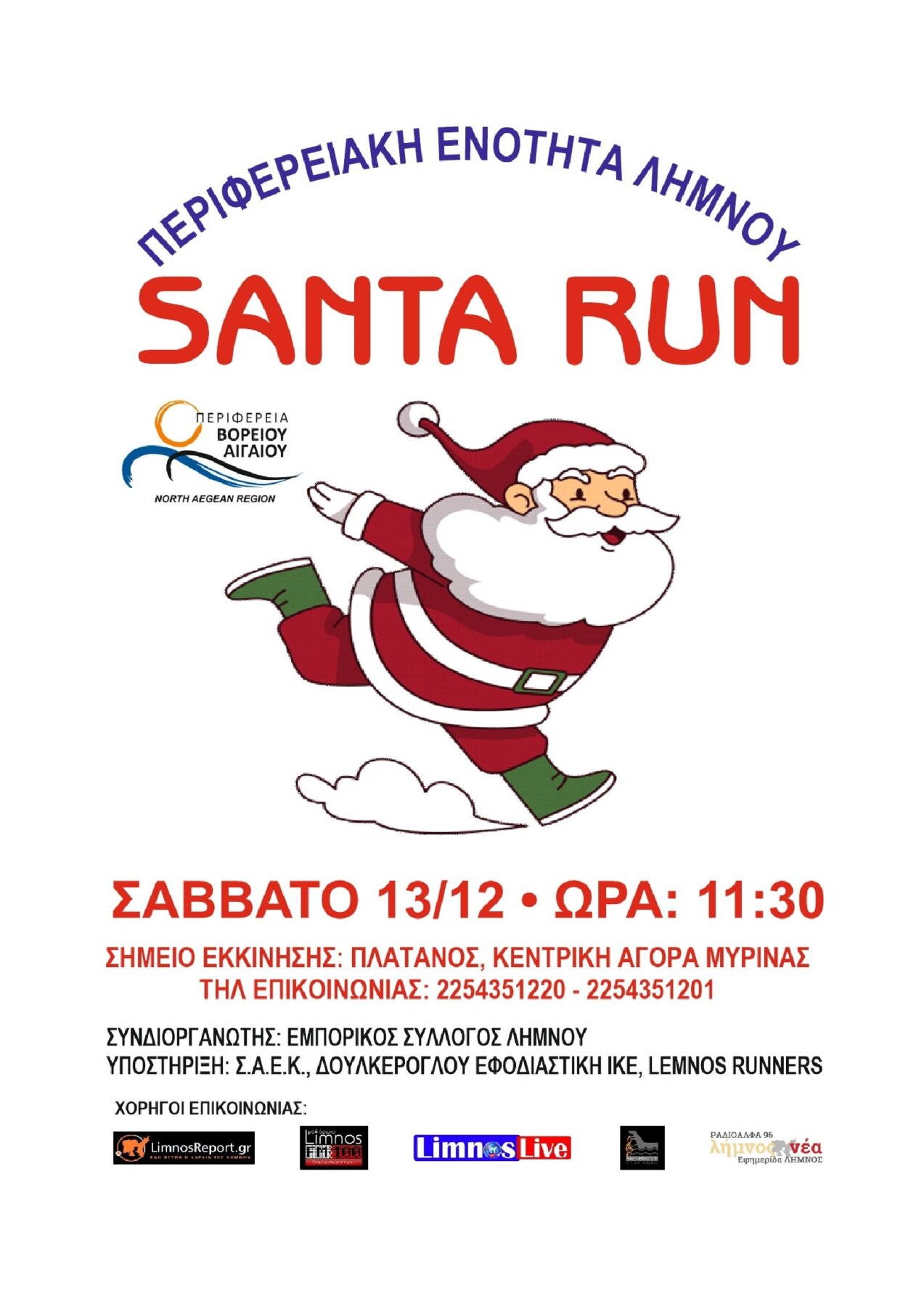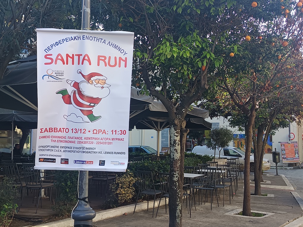 Παρά τις δυσκολίες, το γιορτινό κλίμα κερδίζει έδαφος τις μέρες αυτές στη Λίμνο. Το Santa Run, με ελεύθερη συμμετοχή, έρχεται να ενώσει μικρούς και μεγάλους, βάζοντας για λίγο στην άκρη τα προβλήματα και δίνοντας χρώμα στην τοπική αγορά και στην καθημερινότητα του νησιού.