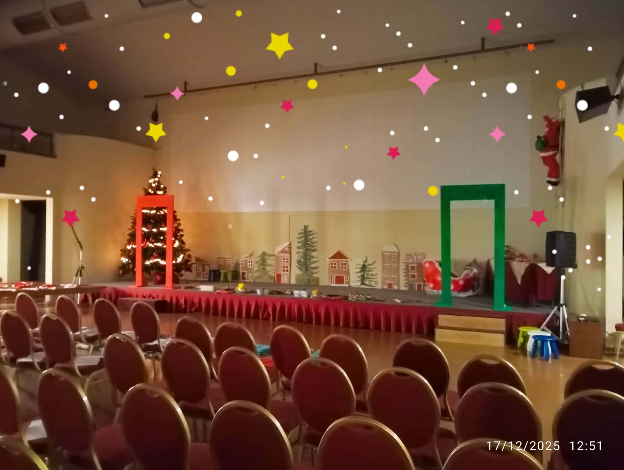 Τα στολίδια λάμπουν στη σκηνή,