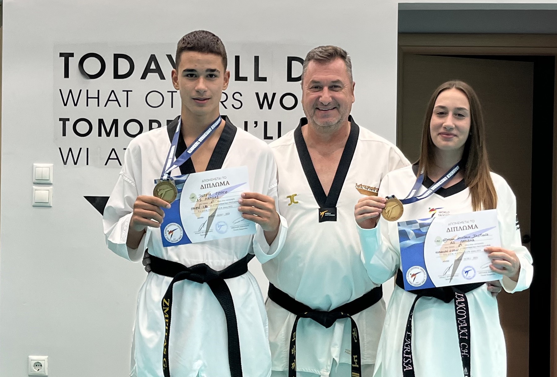 Να φορέσουν μετάλλιο στο στήθος, εκπροσωπώντας την εθνική τους ομάδα και βλέποντας την ελληνική σημαία να υψώνεται στο χώρο του βάθρου και να κυματίζει περήφανα. Στις 14 Οκτωβρίου, η Χριστιάνα Ιακωβάκη πανηγύριζε τη διπλή επιτυχία που σημείωσε στο 23ο Παγκόσμιο Πρωτάθλημα Ταεκβοντό ITF το οποίο διεξήχθη στο Γιέζολο της Ιταλίας, αφού κατέκτησε το χάλκινο μετάλλιο στο ατομικό sparring (junior νεανίδων -60 κιλών I-II Degree) αλλά και το χρυσό μετάλλιο με την Εθνική Ομάδα στο ομαδικό sparring. Στις 21 Νοεμβρίου, ήταν η σειρά του Γιώργου Ζμπήτα να ανέβει στο βάθρο κατακτώντας το χάλκινο μετάλλιο στο Ευρωπαϊκό Πρωτάθλημα εφήβων – νεανίδων που πραγματοποιήθηκε στο Εγκλ της Ελβετίας. Αμφότεροι, πέρα των εντυπωσιακών επιτευγμάτων τους στο χώρο του αθλητισμού από τόσο νεαρή ηλικία, κατάφεραν εξωαγωνιστικά κάτι εξίσου σπουδαίο: να τους δοθεί η δυνατότητα εισαγωγής σε οποιαδήποτε σχολή της αρεσκείας τους δίχως την υποχρέωση εξετάσεων, σύμφωνα με τη νομοθεσία για αθλητές παγκόσμιων διακρίσεων.