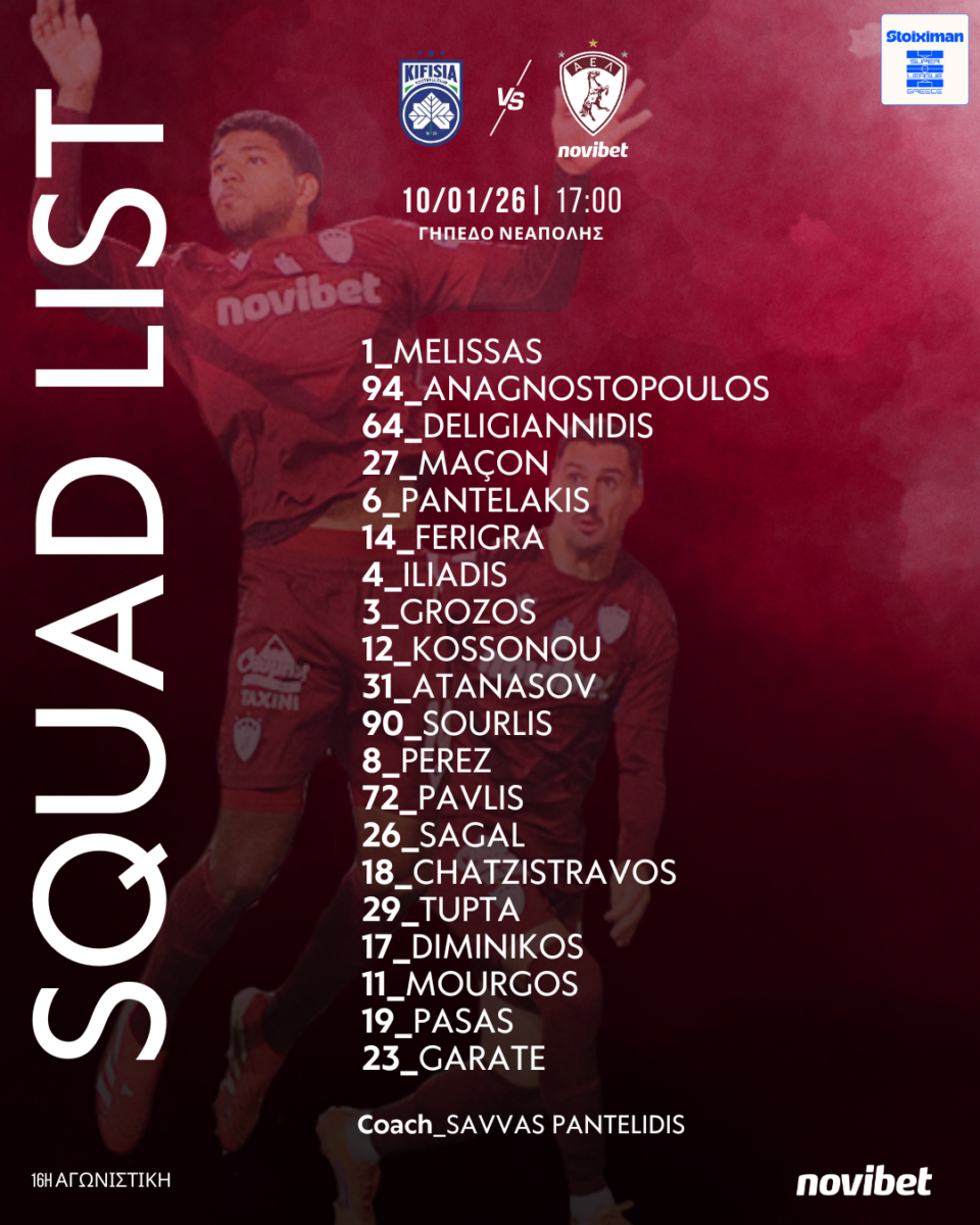 Ποδαρικό με το δεξί στο 2026 θέλει να κάνει το απόγευμα του Σαββάτου(17:00) στη Νεάπολη η ΑΕΛ Novibet στην αναμέτρηση με την Κηφισιά για την 16η αγωνιστική της Super League. Το συγκρότημα του Σάββα Παντελίδη ταξίδεψε με απουσίες στην πρωτεύουσα, έχοντας όμως και το μεταγραφικό απόκτημα Ιβάν Μασόν.