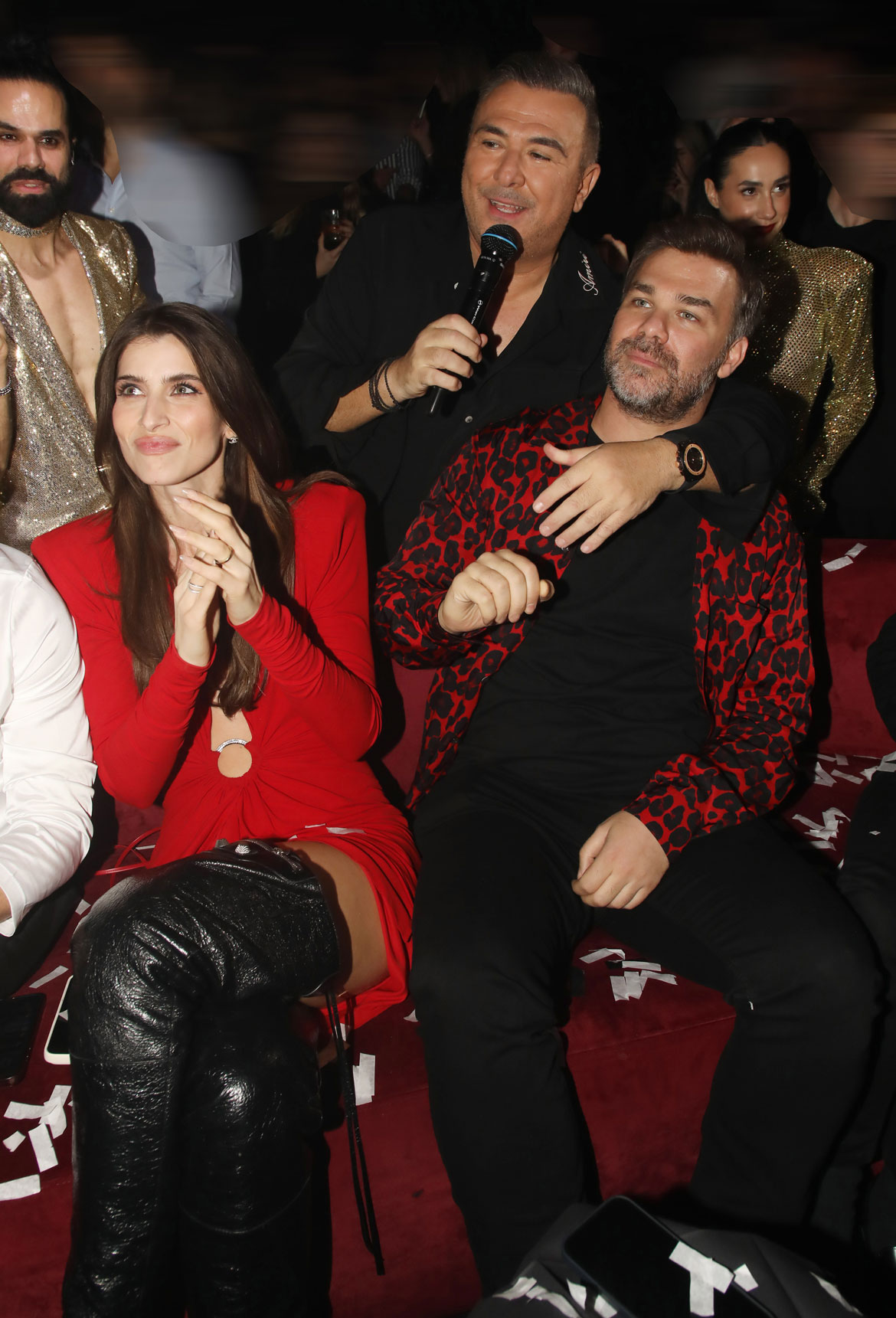 Η διάθεση ήταν ιδιαίτερα ανεβασμένη, με τον Γιώργο Σαμπάνη να δείχνει χαλαρός και ευδιάθετος, ενώ σε κάποια στιγμή ανέβηκε στη σκηνή, ανταλλάσσοντας χαμόγελα και πειράγματα με τον τραγουδιστή, δίνοντας έναν ακόμη πιο ζεστό τόνο στη βραδιά.