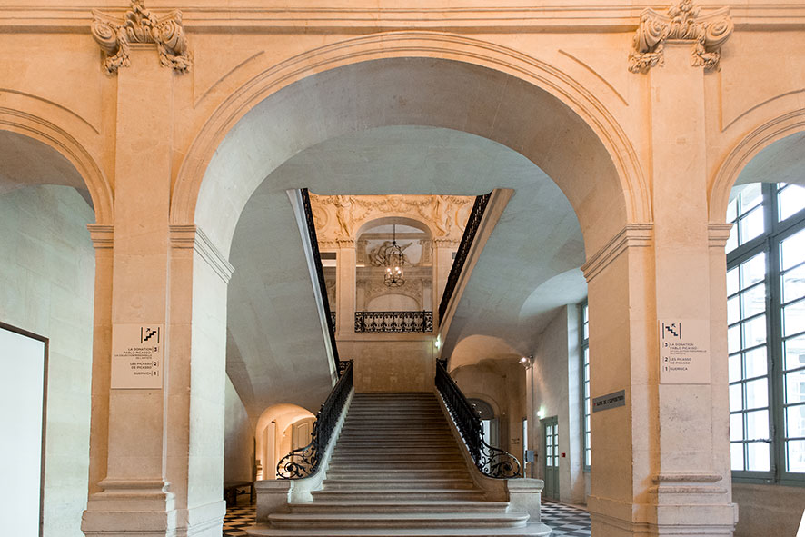 Η απόφαση να στεγαστούν εκεί έργα του Πάμπλο Πικάσο ελήφθη το 1974, έναν χρόνο μετά τον θάνατο του καλλιτέχνη. Το κτίριο ανήκε τότε στη δημοτική αρχή του Παρισιού και είχε χαρακτηριστεί Ιστορικό Μνημείο στις 29 Οκτωβρίου 1968.