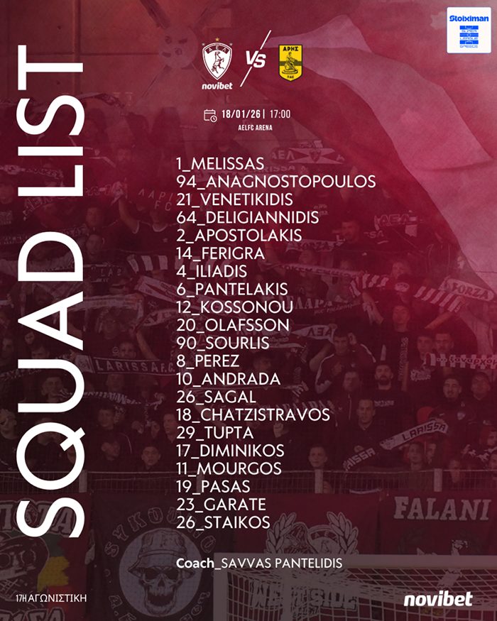 Με στόχο την πρώτη της εντός έδρας νίκη η ΑΕΛ Novibet υποδέχεται την Κυριακή 18 Iανουαρίου τον Άρη(17:00) για την 17η αγωνιστική της Super League. Το συγκρότημα του Σάββα Παντελίδη με ανεβασμένη ψυχολογία μετά την ισοπαλία στη Νεάπολη με την Κηφισιά, θέλει να δώσει συνέχεια στα θετικά αποτελέσματα και να μειώσει την διαφορά στην βαθμολογία από τις υπόλοιπες ομάδες. Σίγουρα ο βαθμός δυσκολίας θα είναι μεγάλος, μιας και το συγκρότημα του Μανόλο Χιμένεθ μετά τον αποκλεισμό στο κύπελλο, έχει μοναδική διέξοδο για την ευρωπαϊκή συμμετοχή τα πλέι οφ(5-8). Στην αποστολή βρίσκεται ο Όλαφσον και επιστρέφουν οι Στάικος, Αποστολάκης, ενώ θα απουσιάσουν λόγω καρτών οι Ατανάσοφ και Μασόν.