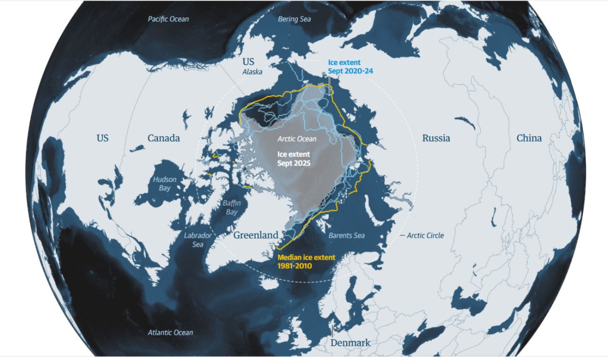 Η κλιματική κρίση συρρικνώνει το στρώμα πάγου της Γροιλανδίας, μαζί με τον πάγο της Αρκτικής θάλασσας, ανοίγοντας νέες θαλάσσιες διαδρομές και αποκαλύπτο Οι απειλές του Τραμπ, που προηγουμένως είχαν θεωρηθεί αλαζονικές, θεωρούνται πλέον ως ένα πρώιμο σημάδι του πώς η τήξη των πάγων μετατρέπει τη Γροιλανδία σε ένα πολύτιμο γεωπολιτικό σημείο ανάφλεξης. Οι παρακάτω χάρτες δείχνουν πώς εξελίσσεται αυτό.
