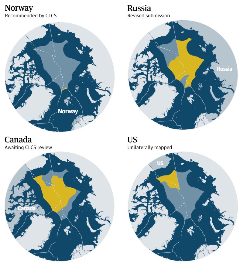 Αρκετές χώρες της Αρκτικής έχουν διεκδικήσεις στην Αρκτική: ο Καναδάς, η Δανία, η Νορβηγία, η Ρωσία και οι ΗΠΑ.