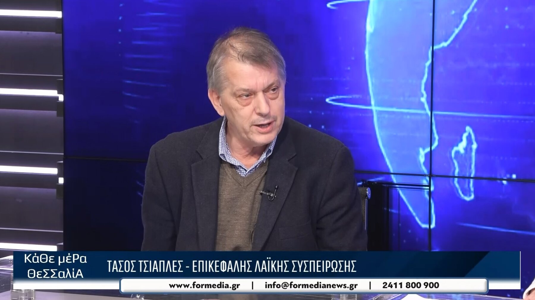 Με έντονη πολιτική και κοινωνική φόρτιση τοποθετήθηκε στην εκπομπή «Κάθε μέρα Θεσσαλία» του FORMedia TV ο επικεφαλής της «Λαϊκής Συσπείρωσης» στο Περιφερειακό Συμβούλιο Θεσσαλίας, Τάσος Τσιαπλές, λίγες ώρες μετά το τραγικό εργατικό δυστύχημα στα Τρίκαλα, που στοίχισε τη ζωή σε πέντε εργαζόμενους.