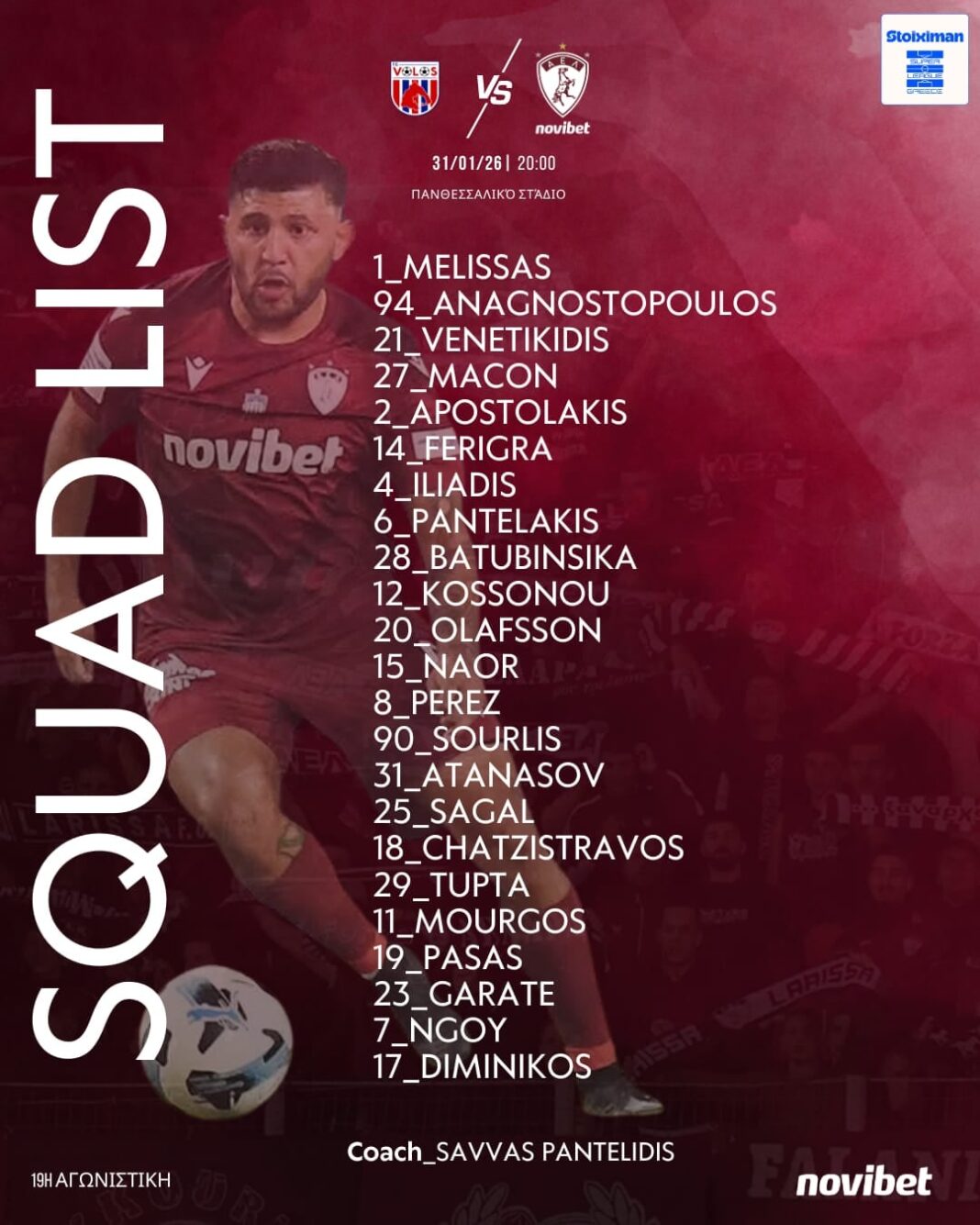 Οι “βυσσινί” μετά το τέλος της προπόνησης της Παρασκευής άκουσαν τον Σάββα Παντελίδη να κάνει γνωστή την αποστολή. Σε αυτή συμπεριλήφθηκαν και οι νεοαποκτηθέντες, Ενγκόι και Μπατουμπινσικά.