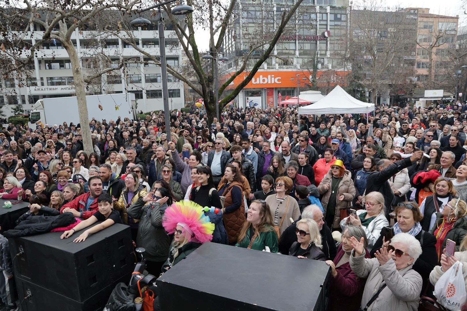 Ένα μεγάλο, τρελό-τρελό γλέντι, με νοσταλγικές μελωδίες από περασμένες δεκαετίες, αλλά και παραδοσιακά τραγούδια στήθηκε λίγο μετά τη 1 το μεσημέρι στην Κεντρική πλατεία της Λάρισας, στη γιορτινή εκδήλωση του Δήμου Λαρισαίων για τη φετινή Τσικνοπέμπτη.