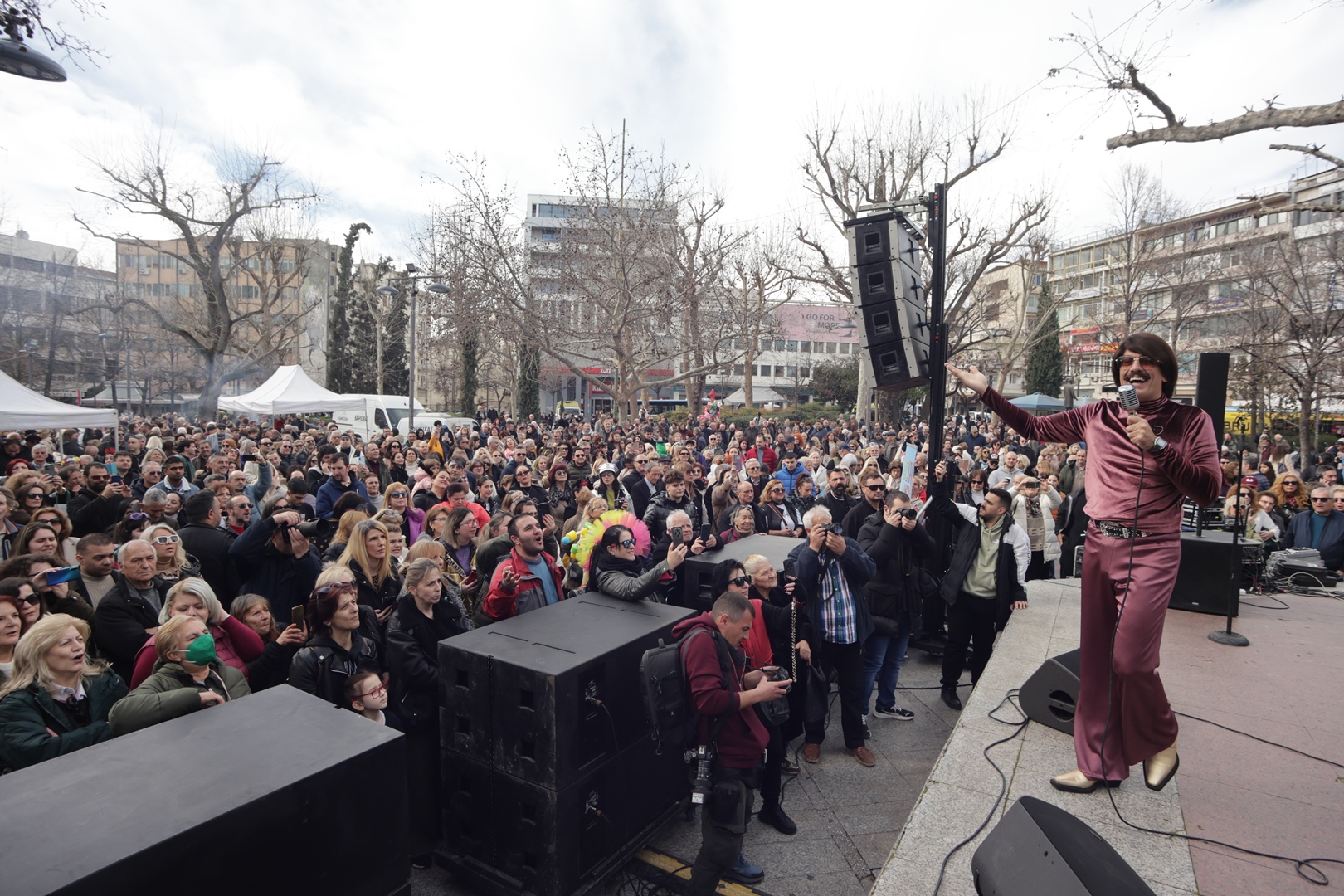 Λαρισαίες και Λαρισαίοι όλων των ηλικιών, με τα μικρά παιδιά και τους νεαρότερους σε ηλικία να έχουν ντυθεί με αποκριάτικες στολές διασκέδασαν, τραγούδησαν και χόρεψαν με την ψυχή τους, με τον Τόνι Σφήνο και την παρέα του να δίνουν τον καλύτερο εαυτό τους.