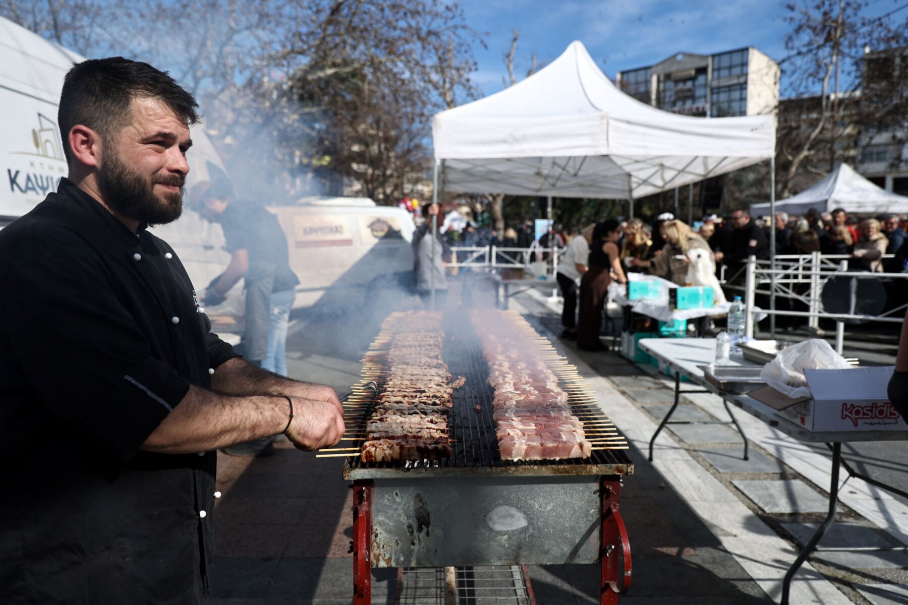 «Σήμερα γινόμαστε όλοι μια παρέα γιορτινή, χορεύουμε, τραγουδάμε και διασκεδάζουμε, αφήνουμε στην άκρη την καθημερινότητα και τα προβλήματα. Τιμούμε το έθιμο της Τσικνοπέμπτης, όπως θέλουν οι παραδόσεις μας, με αυτή τη μεγάλη γιορτή χαράς, ξεφαντώματος και γεύσεων. Καλή διασκέδαση σε όλες και όλους!», ευχήθηκε ο Δήμαρχος Λαρισαίων, καλωσορίζοντας τους καλλιτέχνες, αλλά και τον κόσμο που έδωσε το “παρών” στην Κεντρική πλατεία.