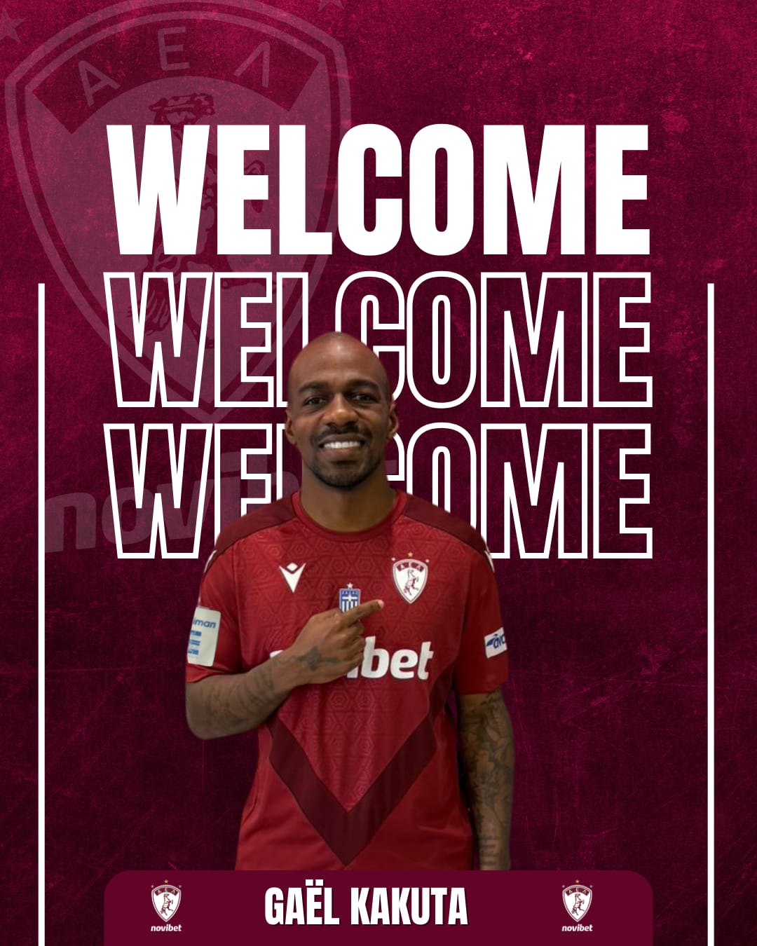 Η ΠΑΕ ΑΕΛ Novibet καλωσορίζει τον Γκαέλ Κακουτά στην ομάδα και του εύχεται πολλές επιτυχίες με τη φανέλα της ομάδας.