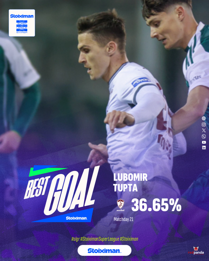 Η Super League ανακοινώνει τα αποτελέσματα του διαγωνισμού, μετά από ψηφοφορία των φιλάθλων, του διαγωνισμού Stoiximan Best Goal 21ης αγωνιστικής: