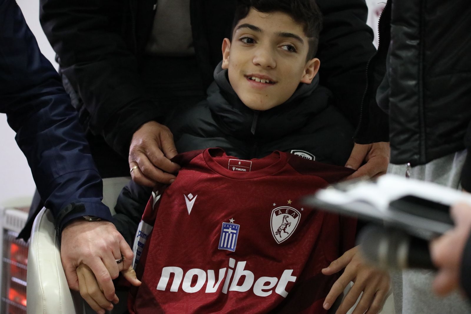 Ο μικρός φίλος της ΑΕΛ φωτογραφήθηκε χαμογελαστός με τη φανέλα στα χέρια, σε ένα στιγμιότυπο που αποτυπώνει τη δύναμη του αθλητισμού να ενώνει, να στηρίζει και να χαρίζει ελπίδα.
